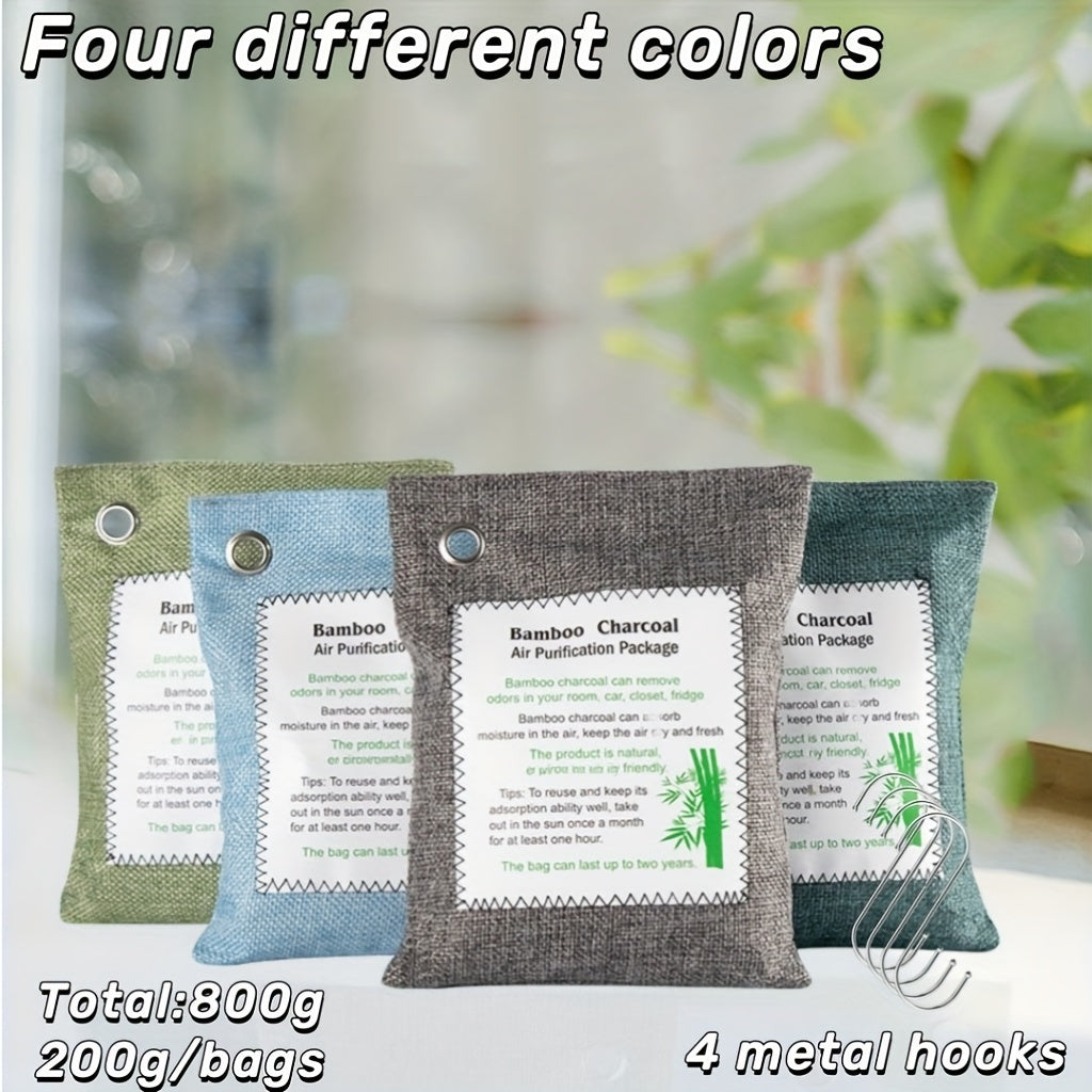 Bambuk ko'mir havoni tozalash sumkasi 4 ta paket 200g hidi yo'qotuvchi turli ranglarda