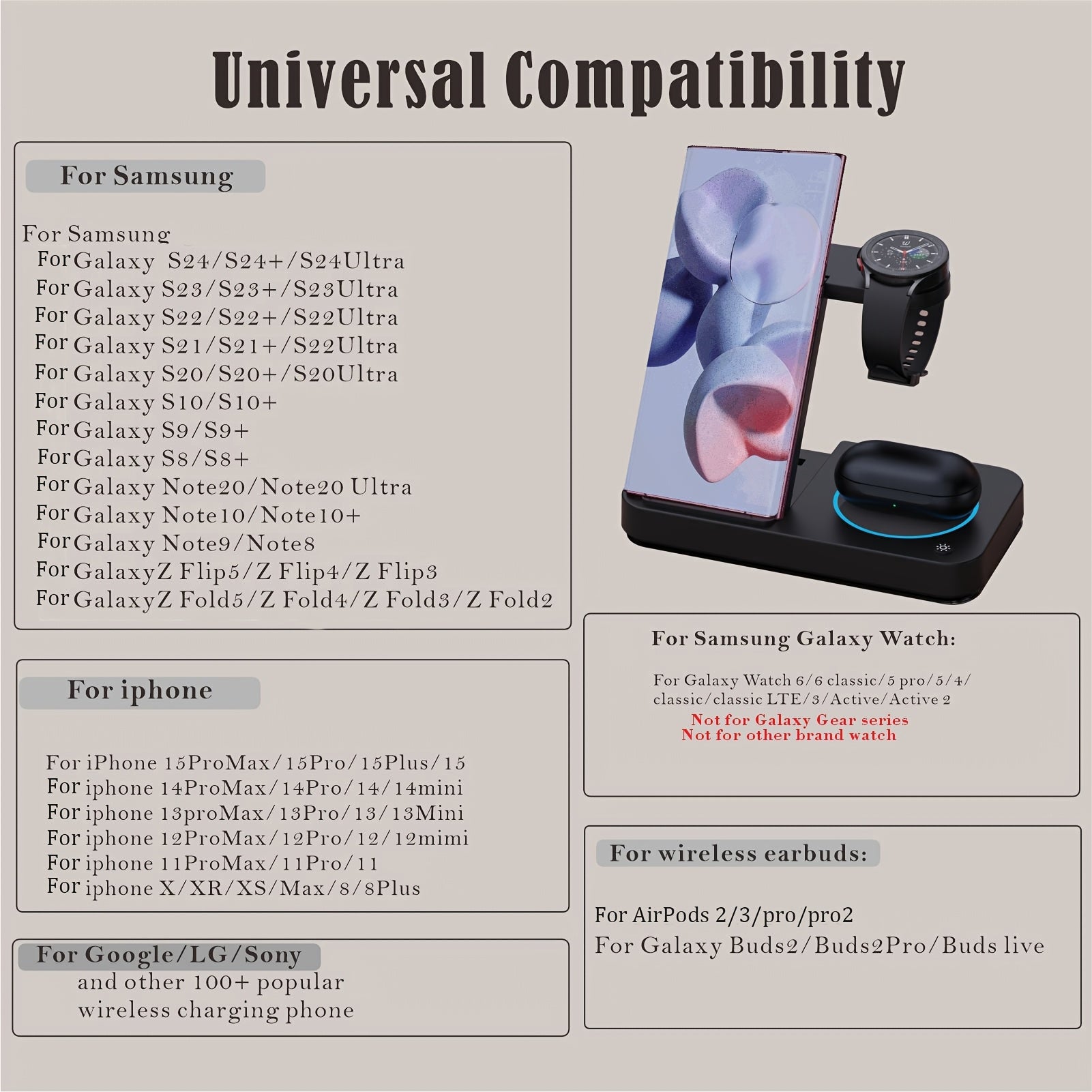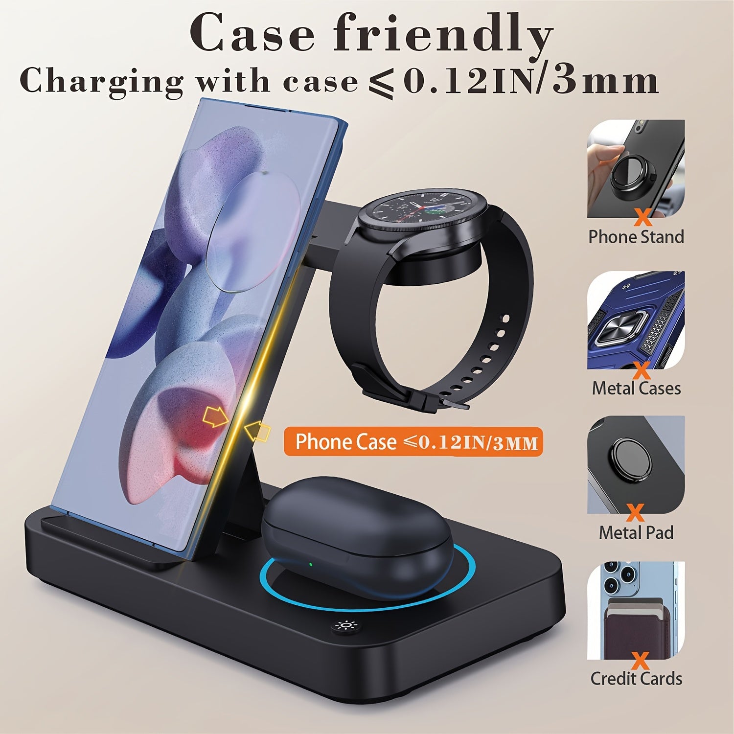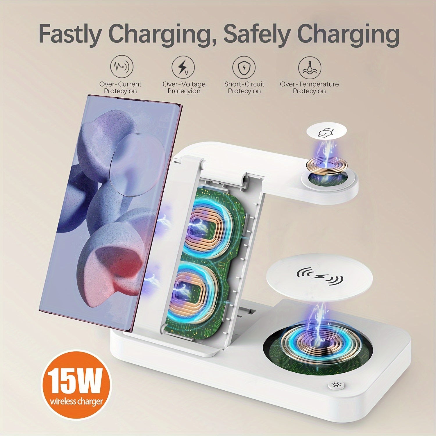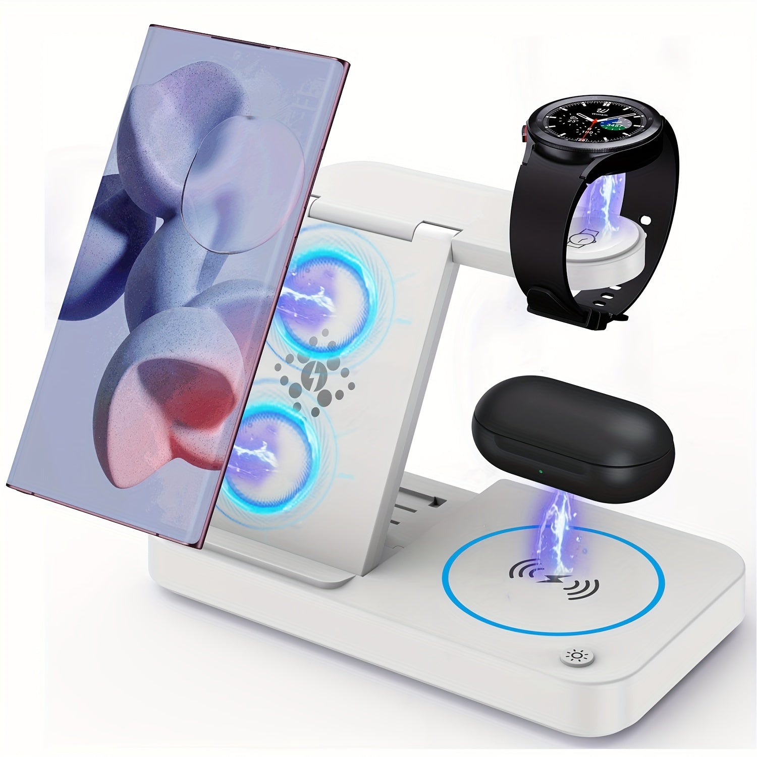 Samsung va Android qurilmalari uchun 4-in-1 simsiz zaryadlash stantsiyasi, LED kechki chiroq bilan