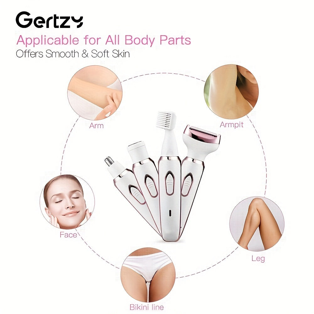 4-in-1 qayta zaryadlanadigan elektr qirrash mashinasi ayollar uchun, yuz, burun, oyoqlar, qo'ltiq osti va bikini zonasiga mos keladi. Nam yoki quruq holda ishlatilishi mumkin, og'riqsiz parvarish to'plami, portativ va qayta zaryadlanadigan.