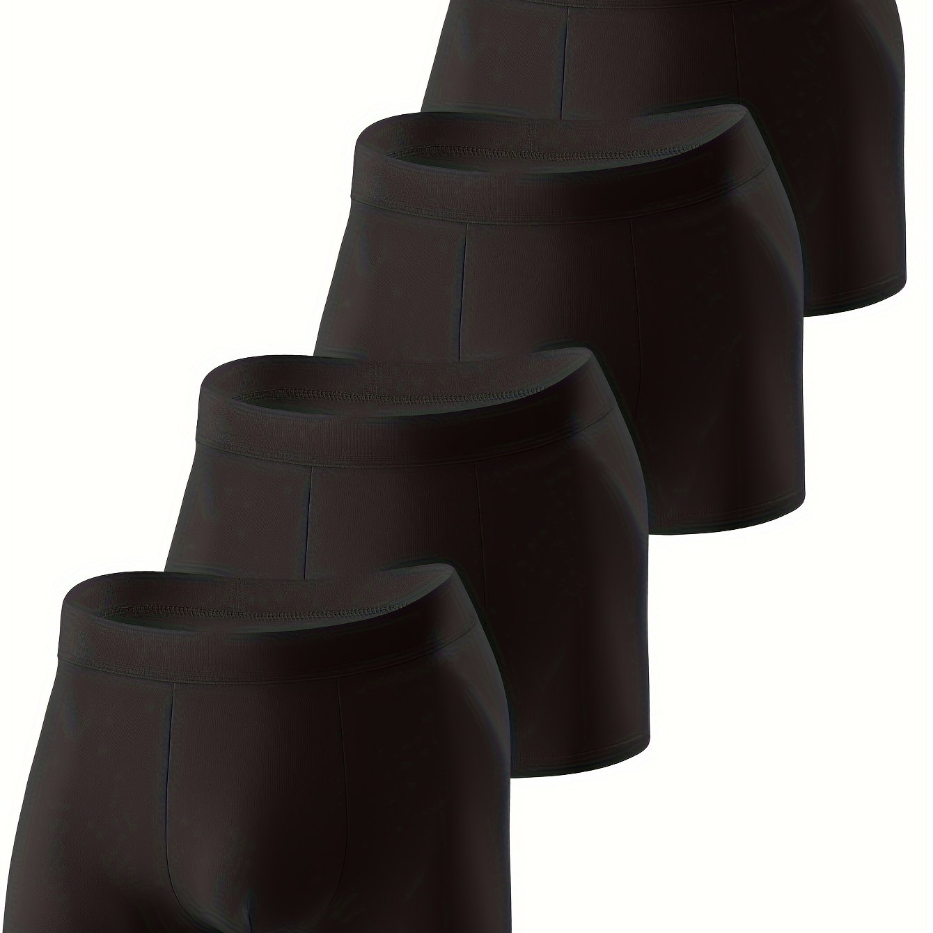4-dona erkaklar uchun tikuvsiz bokser shortlar, "UNDERWEAR" bel bog'ichida chop etilgan, turli ranglarda.