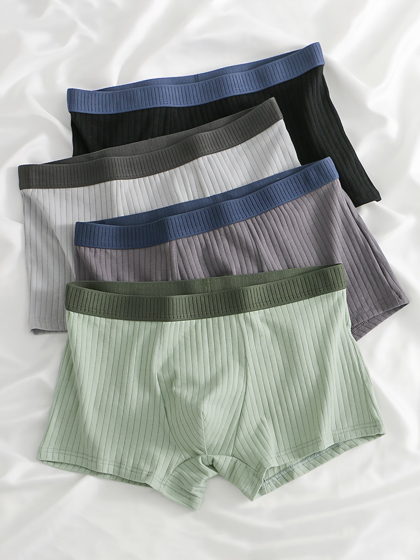 4-qismli erkaklar uchun boxer brief: paxta aralashmasi, cho'ziluvchan, turli ranglar