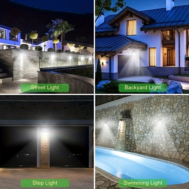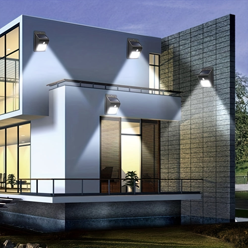 4-Donali quyosh energiyali tashqi devor chiroqlari harakat sensori bilan bog'lar, zinalar va yo'llar uchun