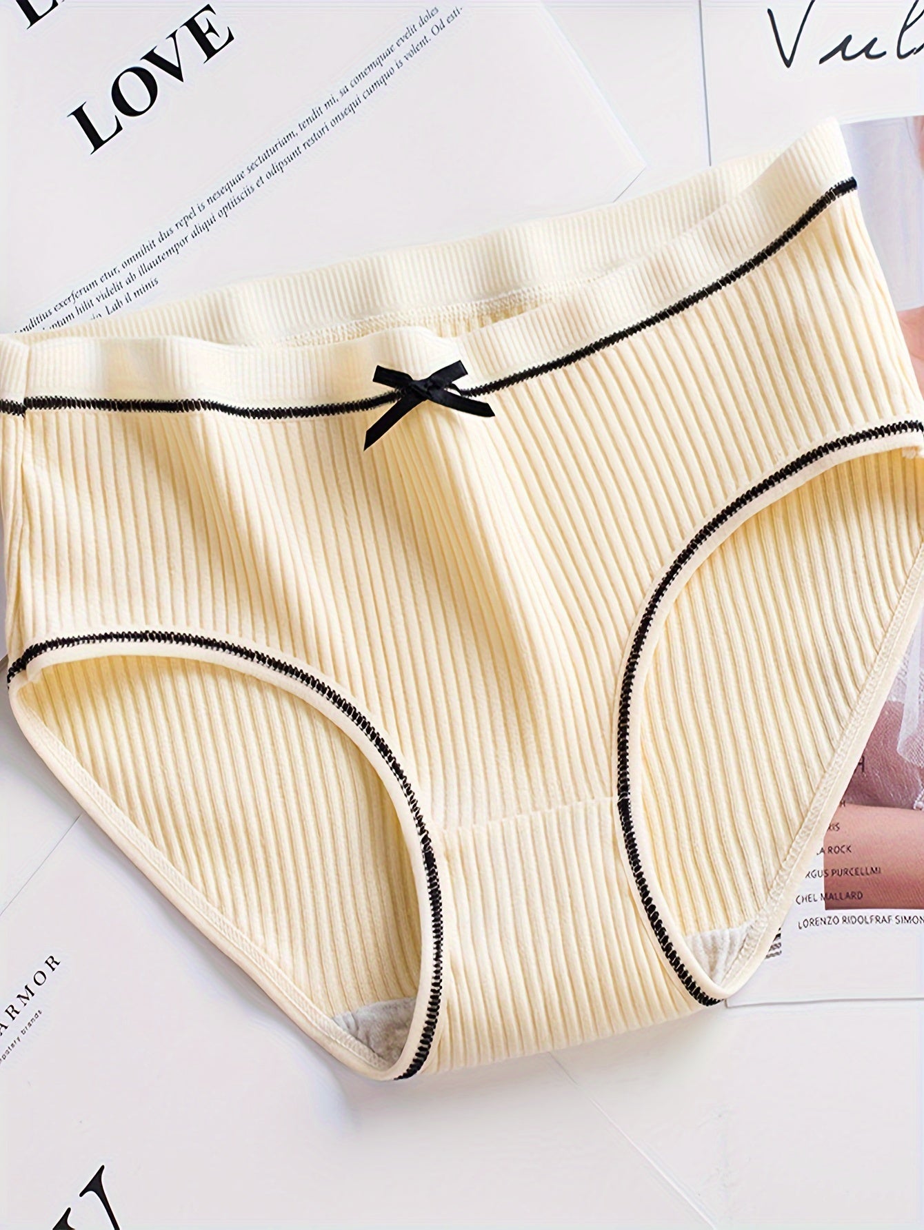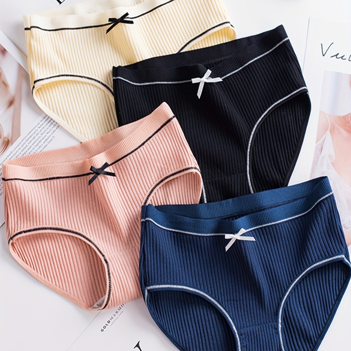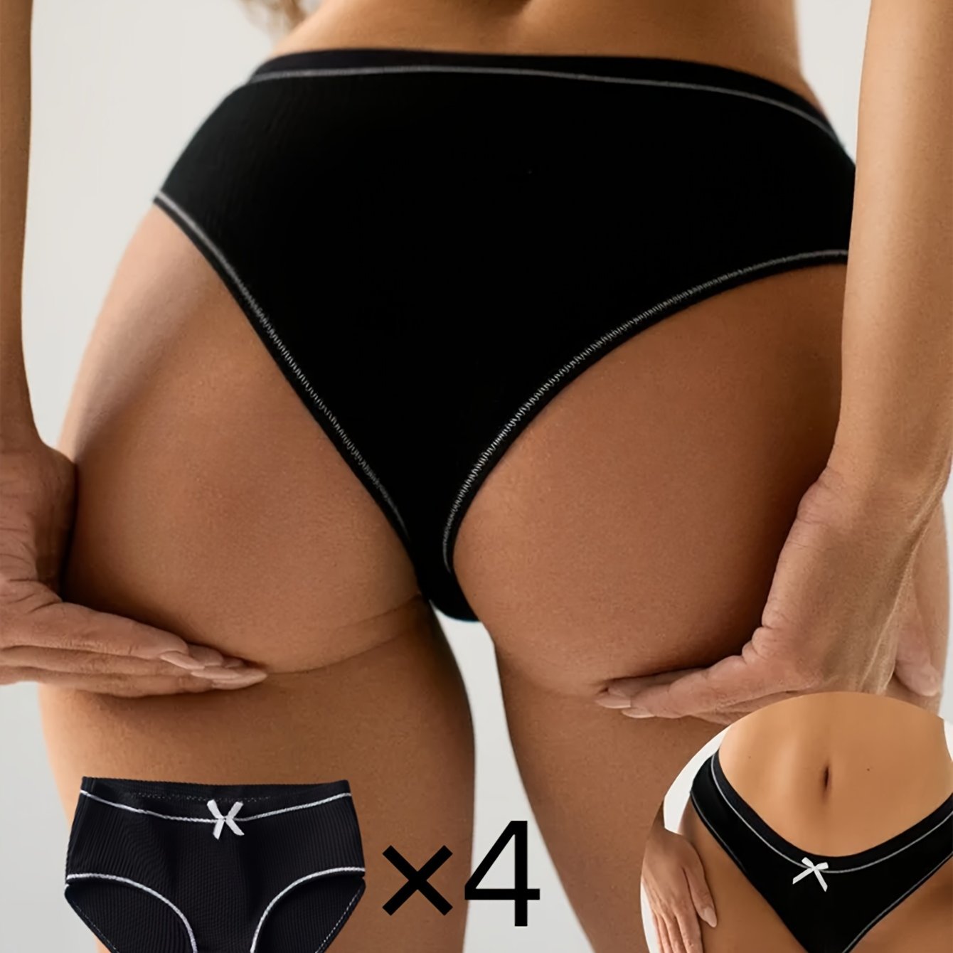 4 dona kamon bezakli, kontrast trimli, qulay va nafas oladigan elastik materialdan tayyorlangan tikuvsiz ichki kiyimlar. Ayollar uchun ichki kiyim va ichki kiyimlar uchun mukammal.