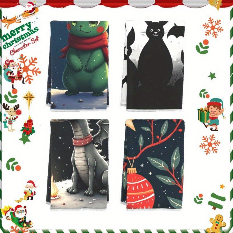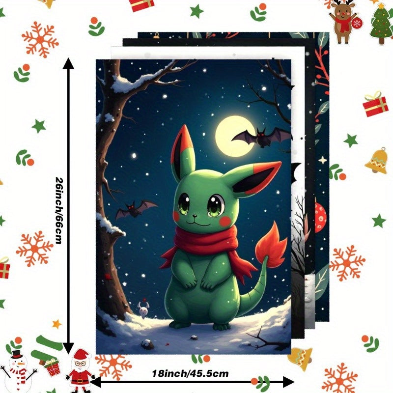 4 dona qorqiz, qor to'pi, Rojdestvo kiyik, iliq qish kiyigi, elka va Rojdestvo daraxti har biri 45.72 ga 66.04 sm o'lchamda. APYTN.