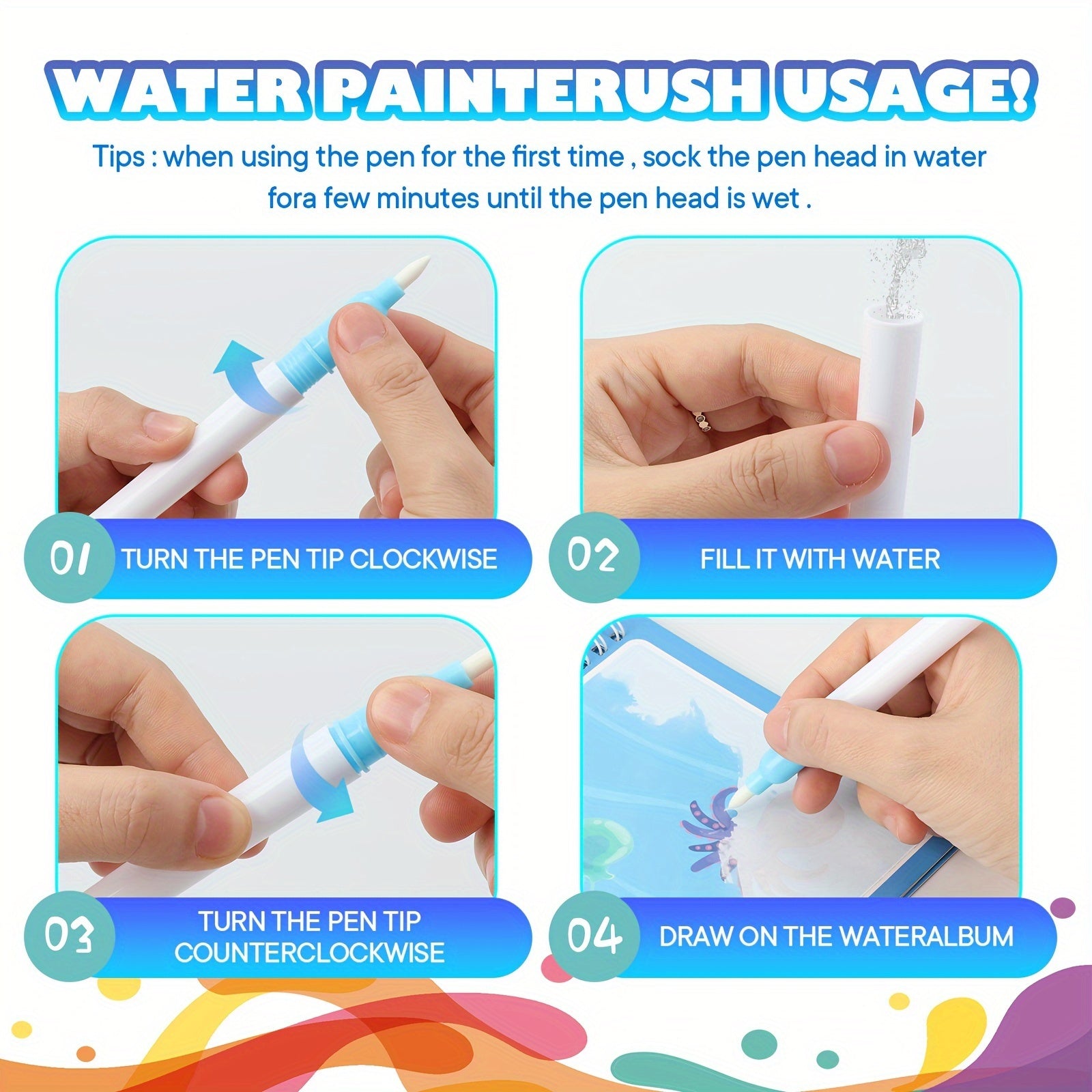 4 ta qayta ishlatiladigan suv bilan bo'yash kitobi, ko'chma va ta'lim beruvchi, uy yoki sinf muhitida rangni qabul qilishni yaxshilaydi.