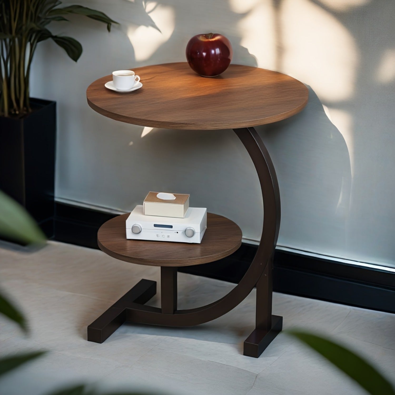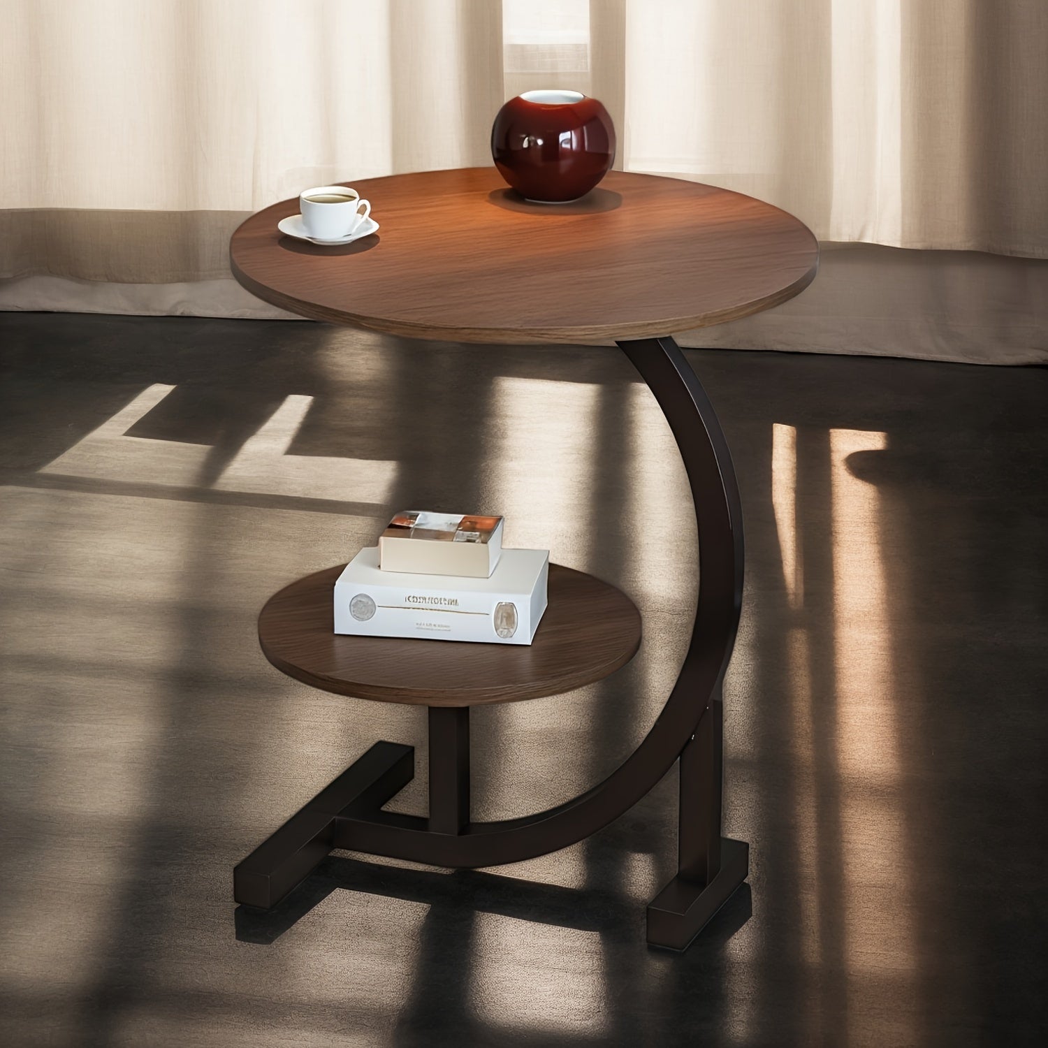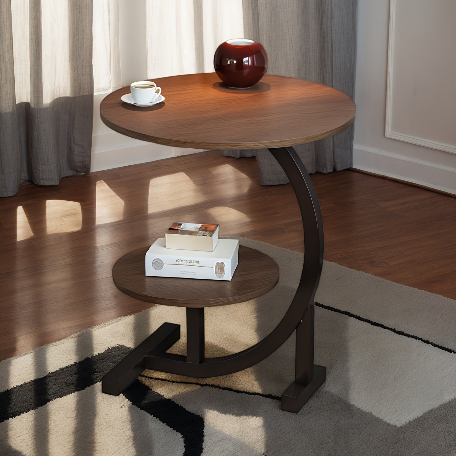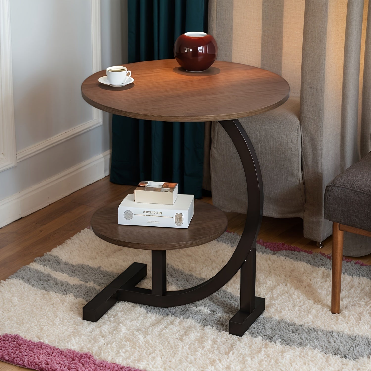 Doira shaklidagi qahva stoli 40.13cm, suv o'tkazmaydigan, ikki qavatli, qattiq yog'och, metall asosli, ichki foydalanish uchun