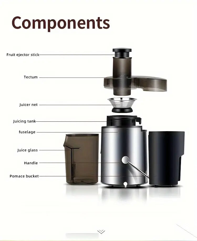 400W zanglamaydigan po'latdan yasalgan markaziy sharbat chiqaruvchi meva va sabzavotlar uchun oson sharbat chiqarish