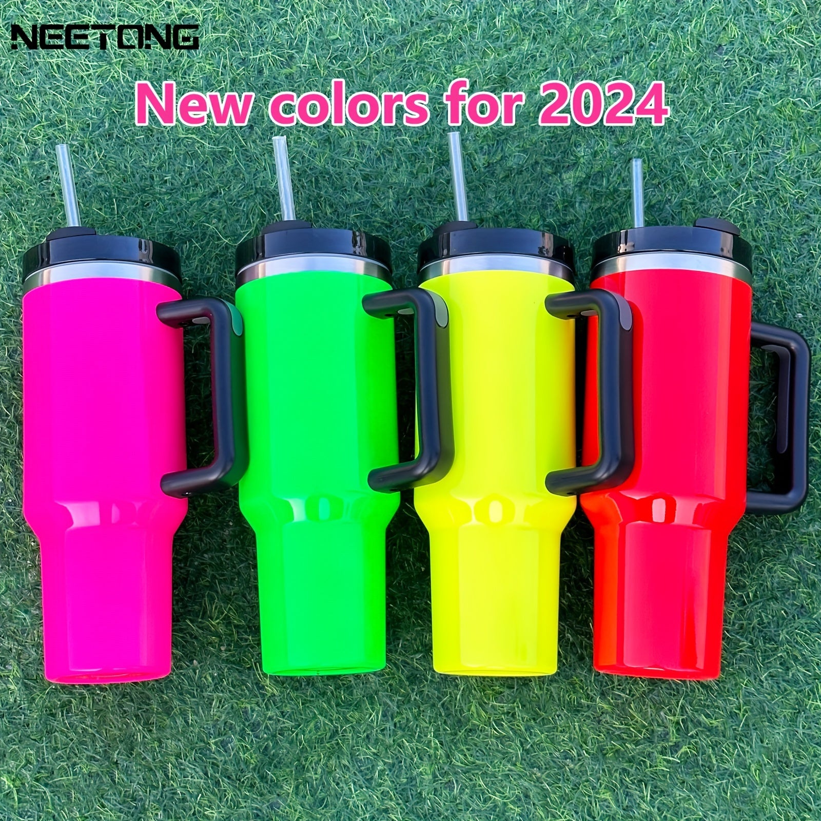 40oz izolyatsiyalangan suv idishi, tutqichli, fluorescentli tumbler, sayohat, uy va ofis uchun