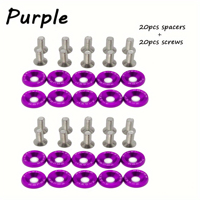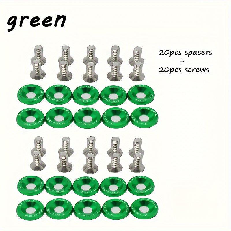 40 dona Alyuminiy M6x20 Avtomobil qopqog'i vintlari, ko'p rangli fastenerlar, avtomobilni modifikatsiya qilish uchun