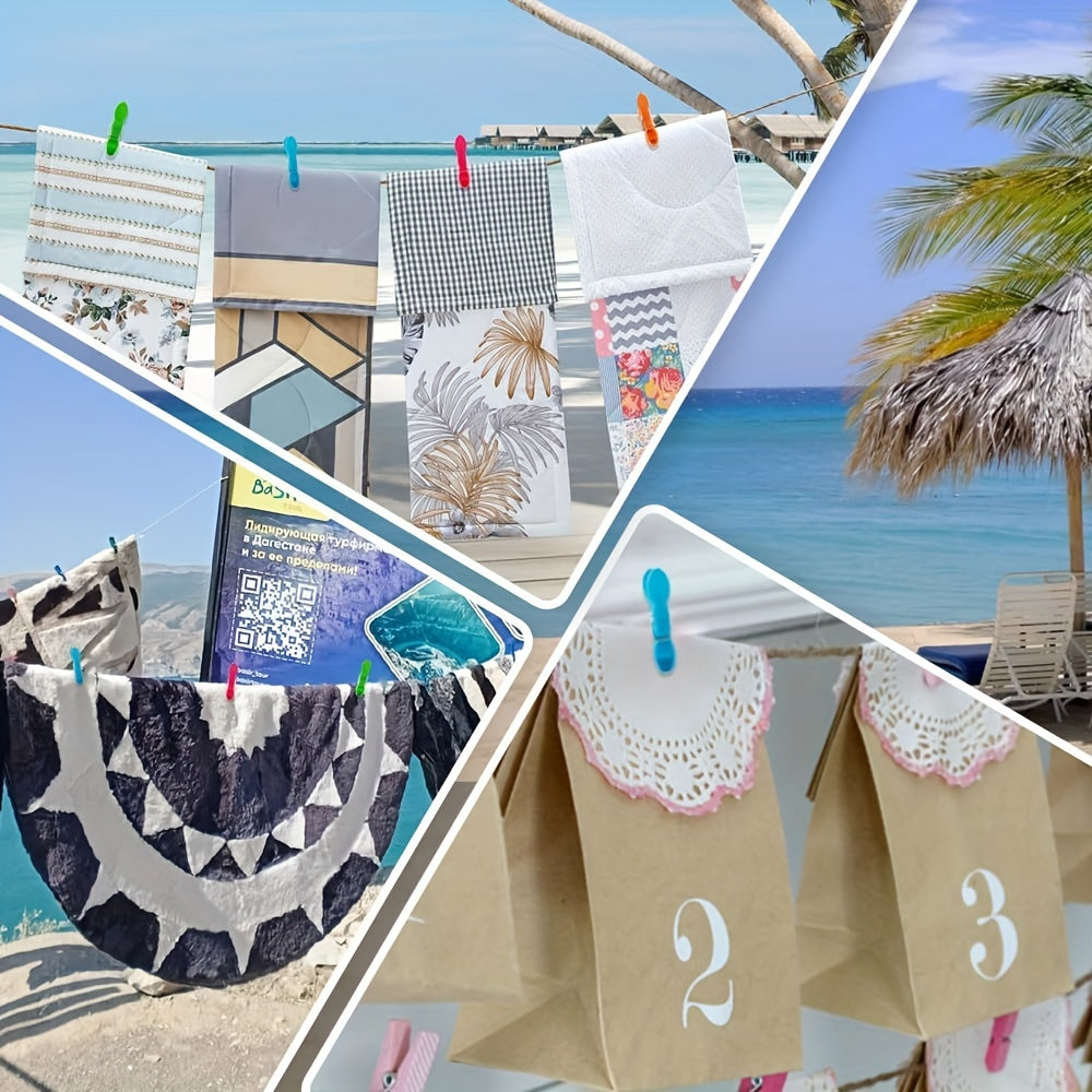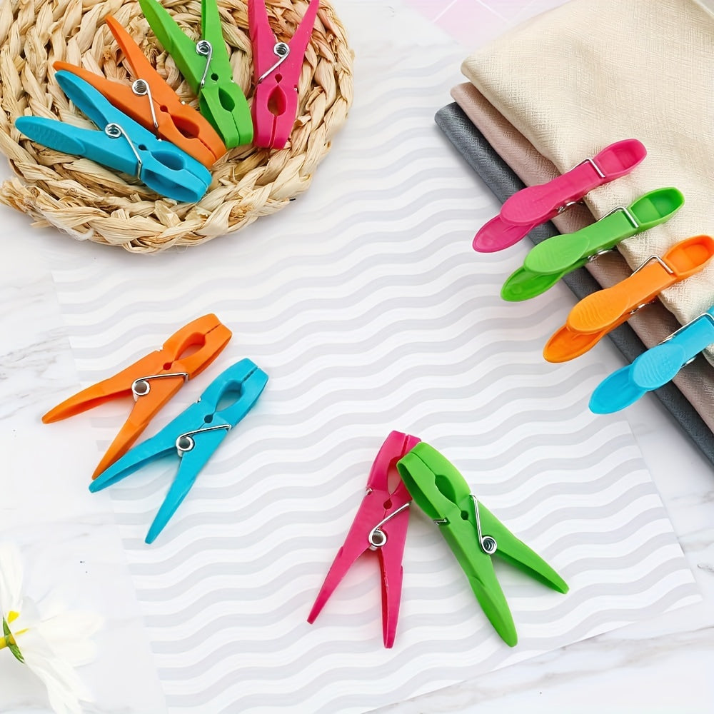 48 dona plastik kiyim kliplari, 24 ta to'plamda mavjud. Bu barqaror va rang-barang kliplar kiyimingizni joyida ushlab turish uchun mukammal, hech qanday iz qoldirmasdan. Ularni paypoq, plyaj sochiqlari yoki oddiy kiyim kliplari sifatida foydalaning.