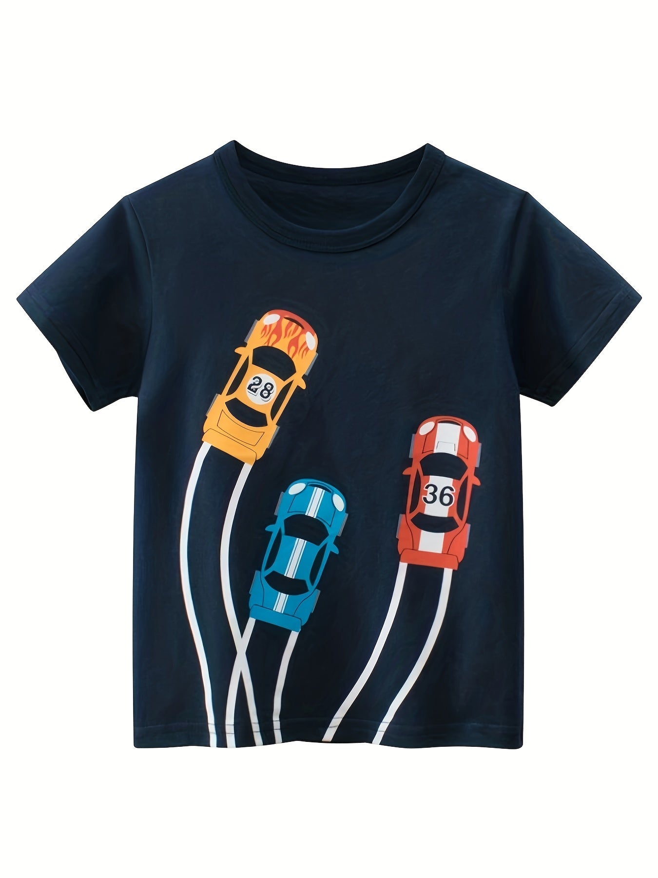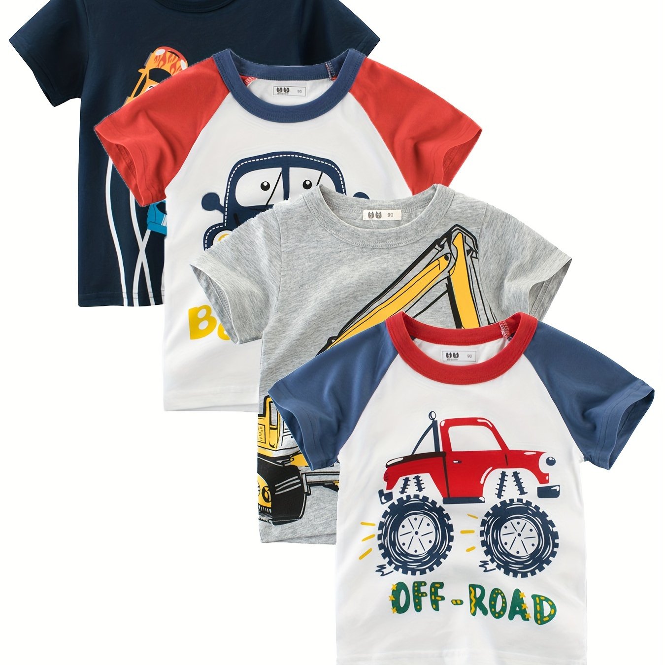 Yozgi ochiq havoda dam olish uchun 4 dona multfilm avtomobil printli o'g'il bolalar paxta futbolkasi