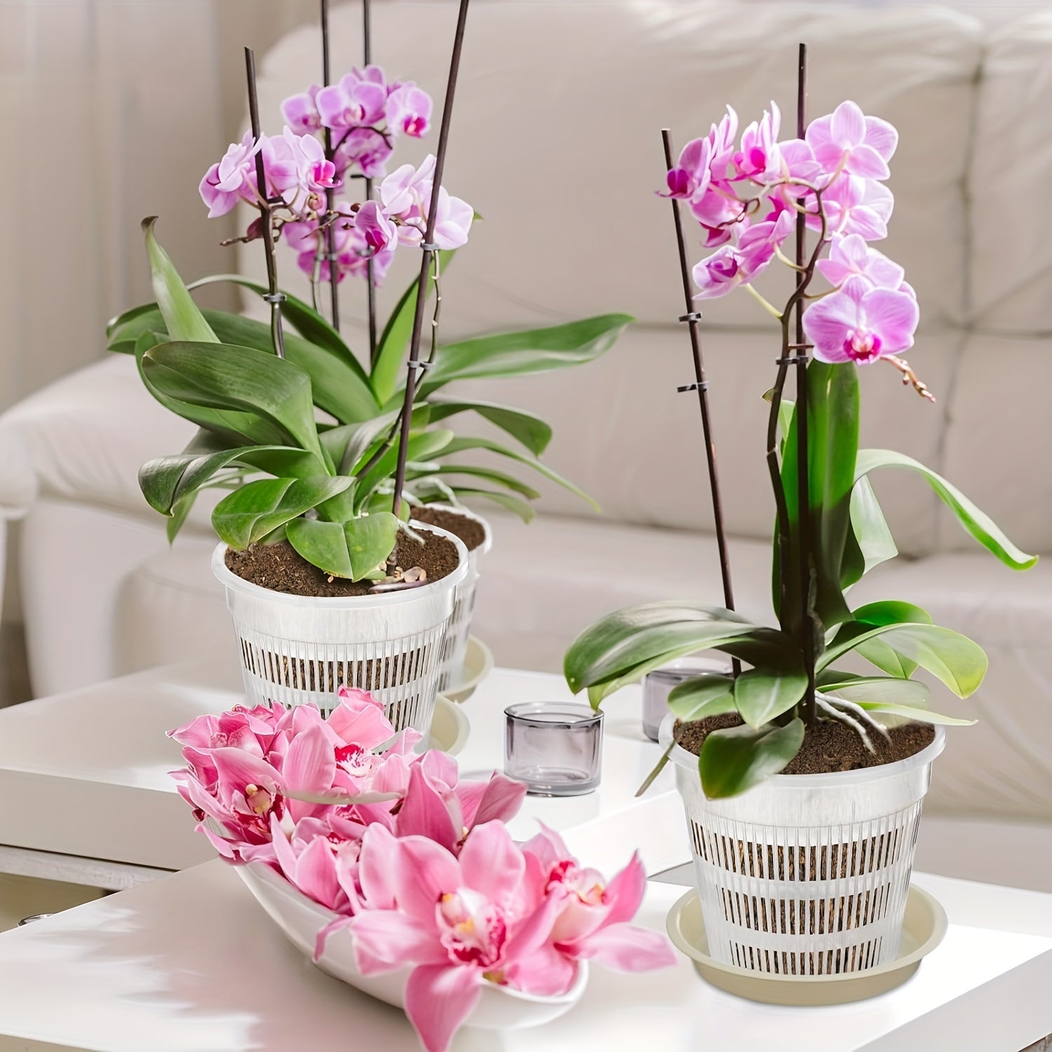 4 dona shaffof plastmassa orkide idishlari 16cm 19cm drenaj teshiklari bilan ichki va tashqi foydalanish uchun
