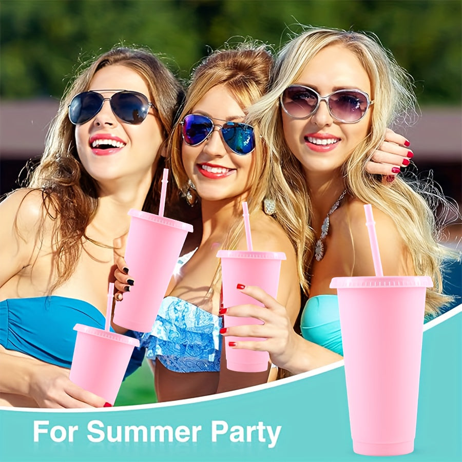 5/10 Qizil plastik stakanlar qopqoq va qalamchalar bilan, 24oz, yozgi partiyalar va basseyn atrofida foydalanish uchun ideal. Faqat qo'lda yuvish, PVCsiz. Sovg'alar va bezaklar uchun ajoyib.