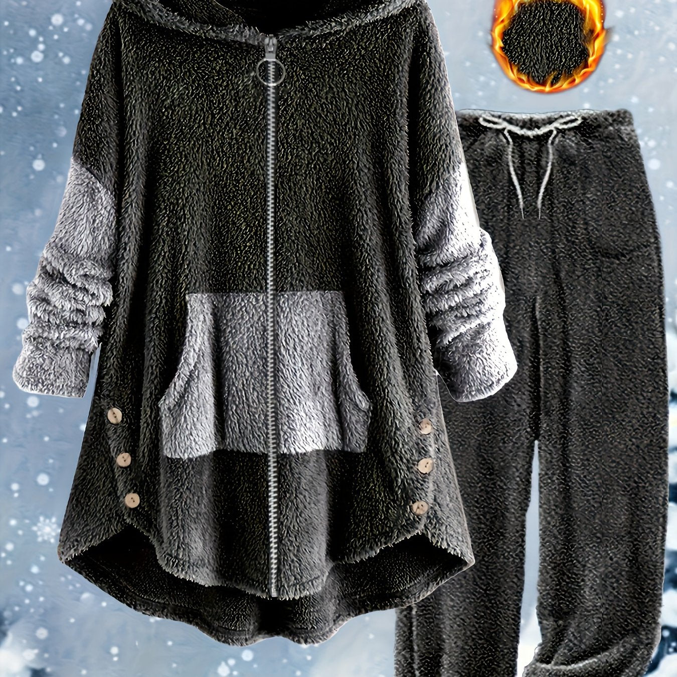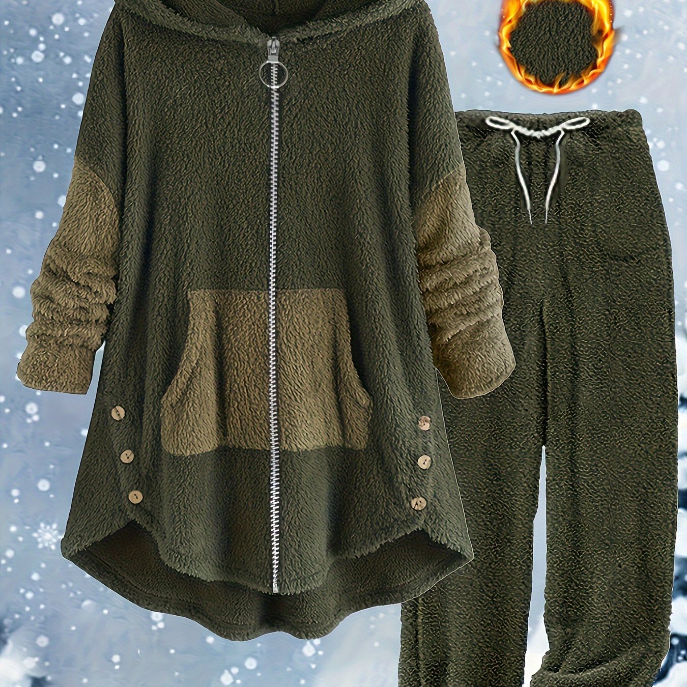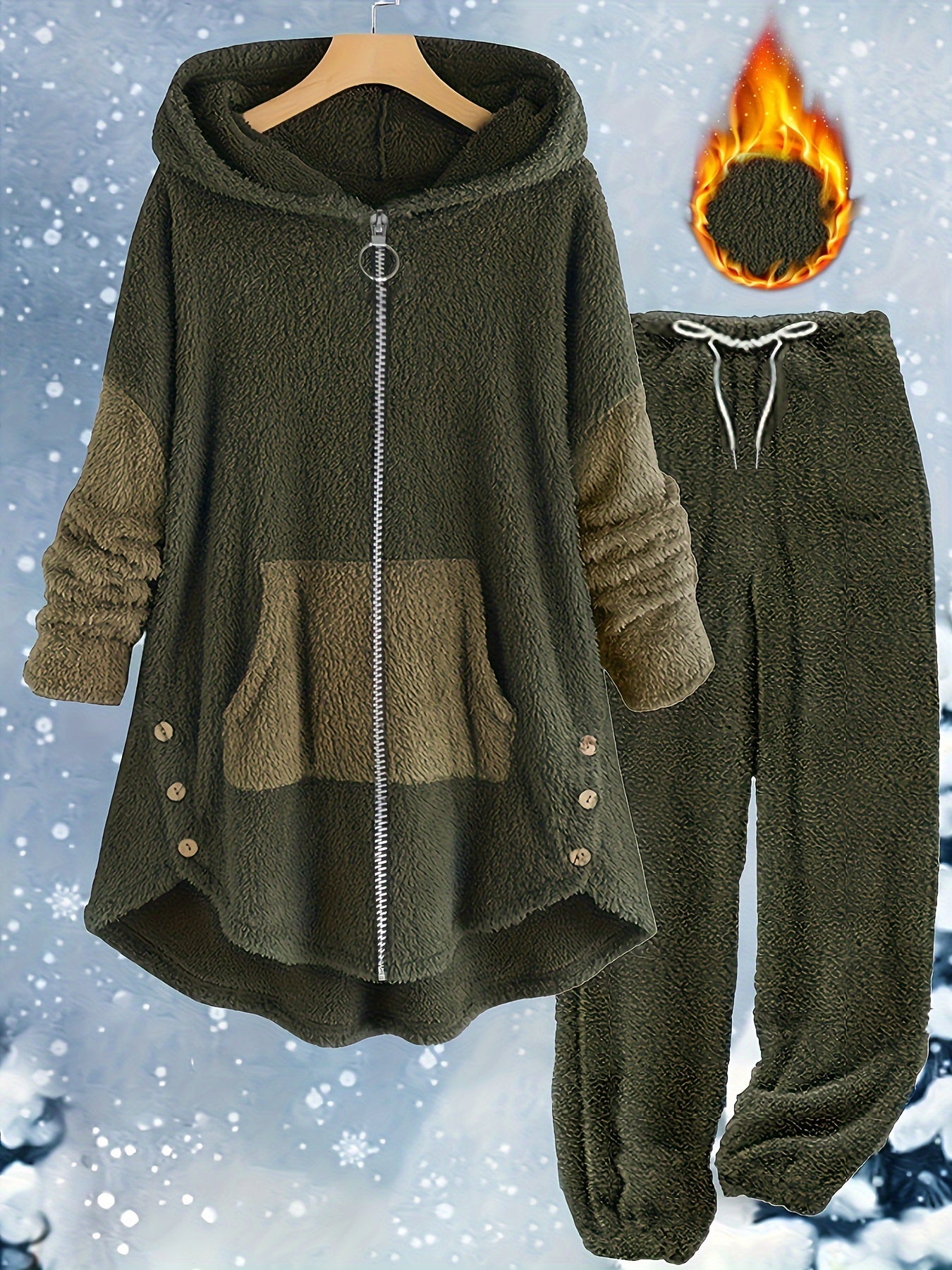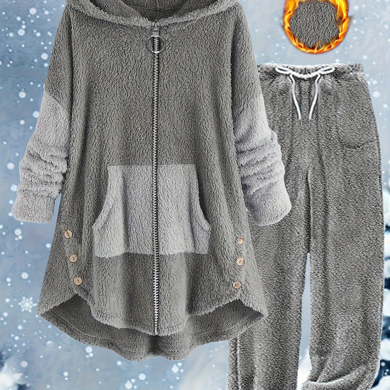 Kapushonli kundalik polyester Lash to'plamlari, cho'ntakli, bir rangli, cho'zilmaydigan to'qimachilik mato