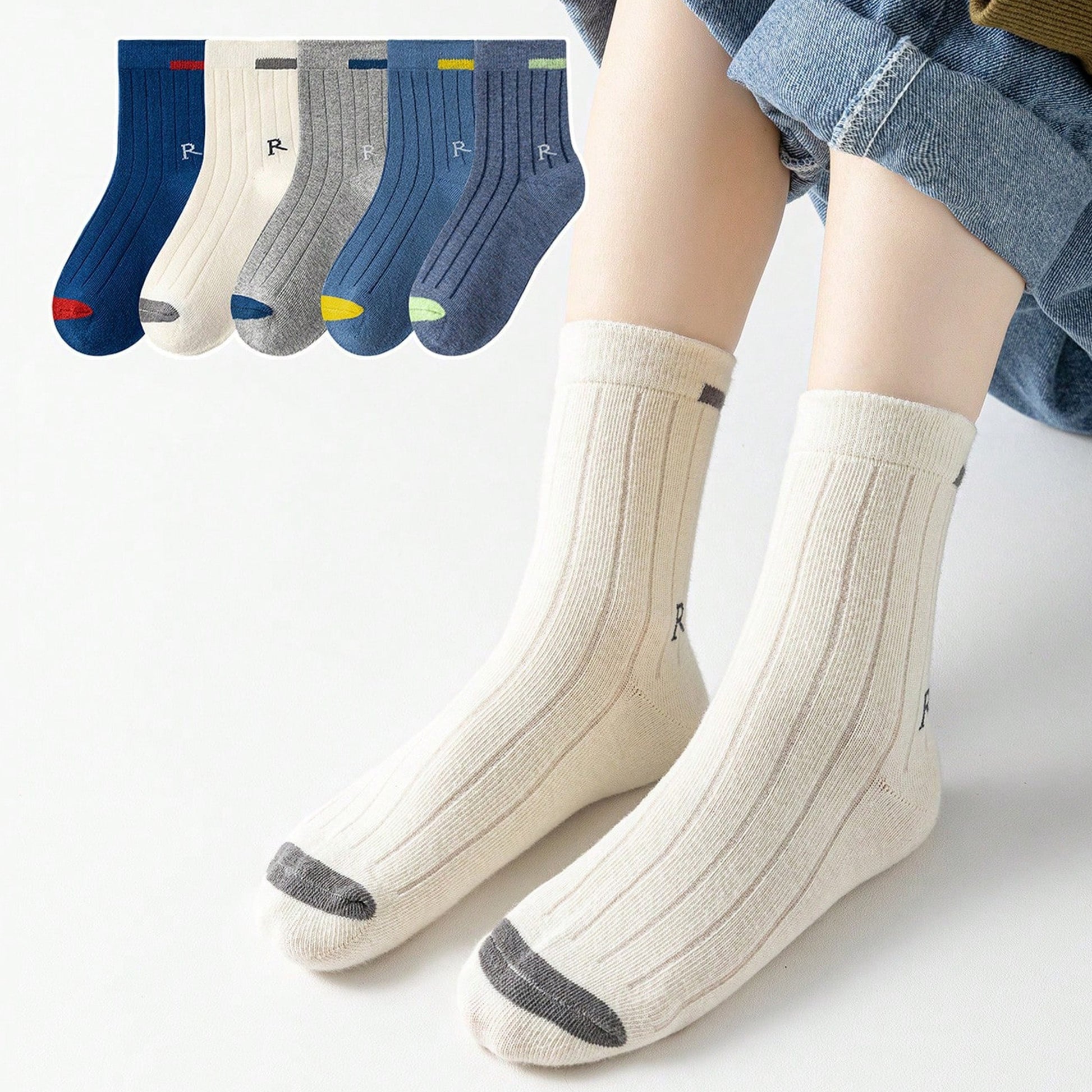 Yigitlar uchun sport paypoq 5-to'plam Nafas oluvchi polyester elastan Barcha mavsumlar uchun o'rta uzunlikdagi