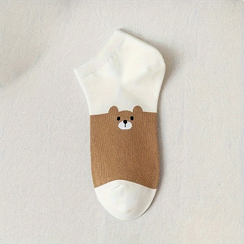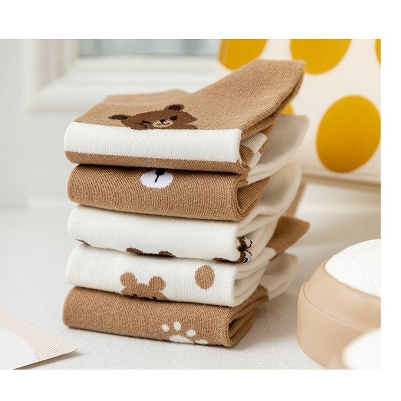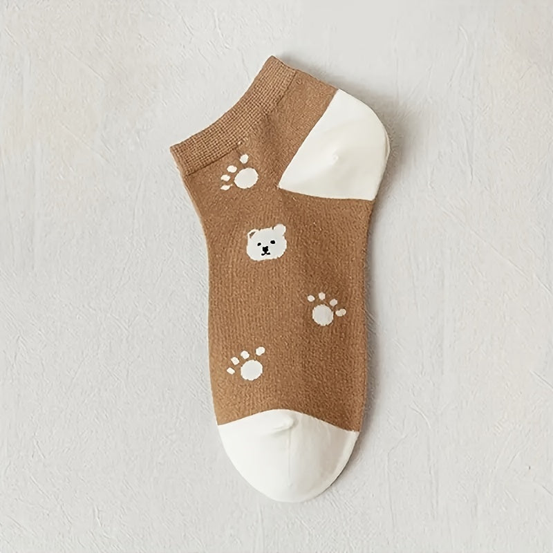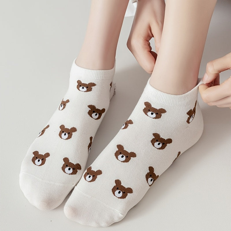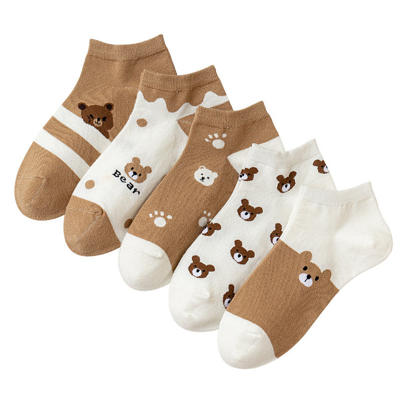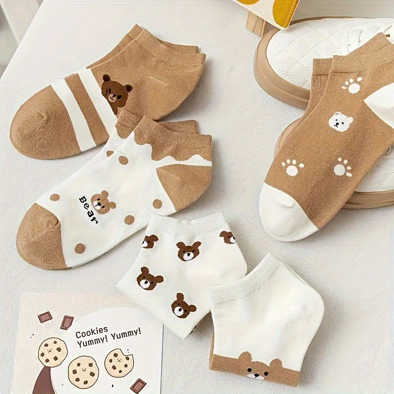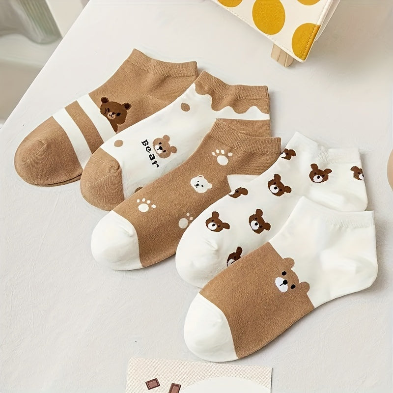 5 ta sevimli ayiq dizayni bo'lgan bo'yin so'zi paypoqlari ayollar uchun. Yumshoq polyester va spandeks aralashmasidan tayyorlangan, yengil va tasodifiy kiyim uchun sevimli.