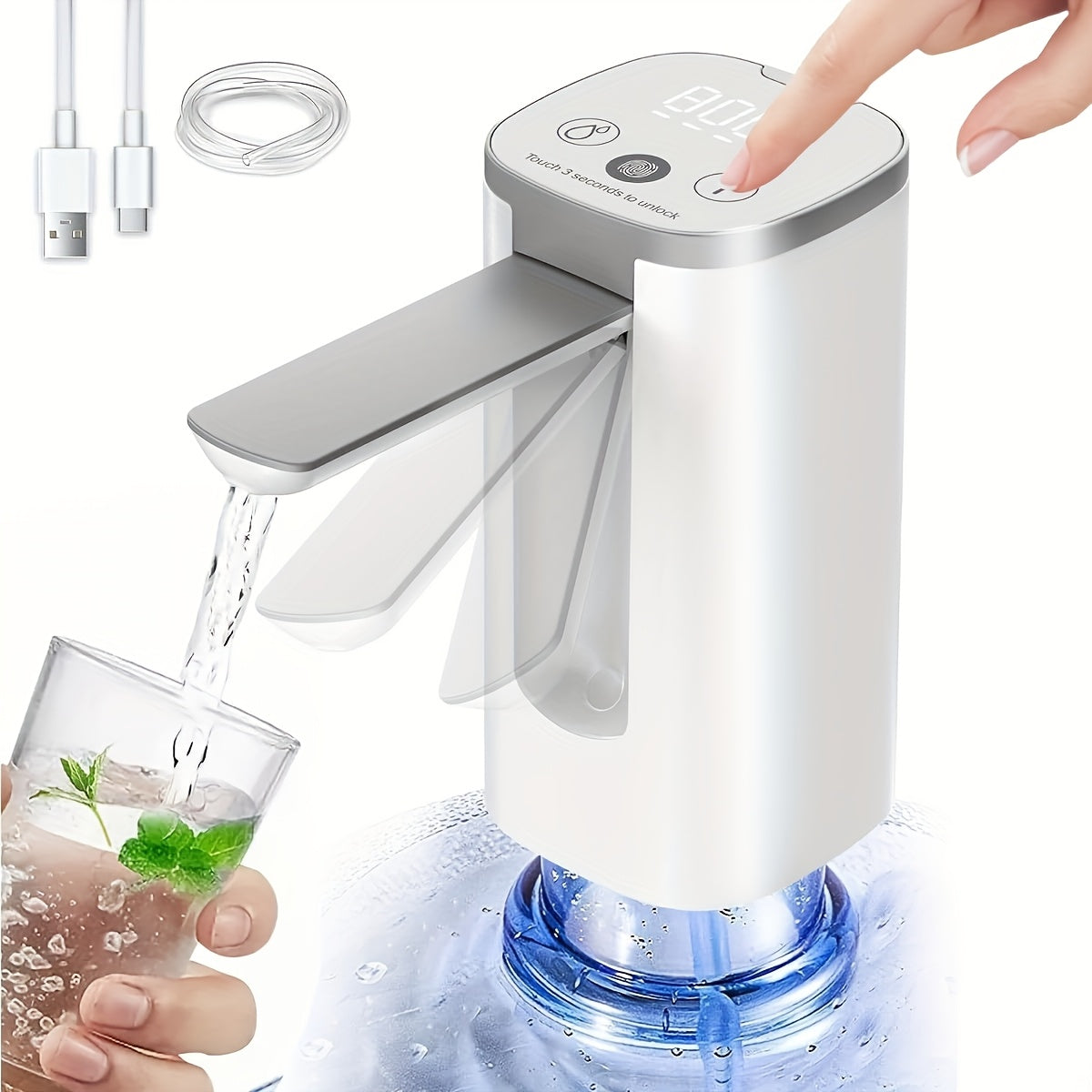 Portativ elektr suv nasosi 5 gallon bilan raqamli displey USB-C zaryadlash, buklanuvchi dizayn, 3 darajali oqim nazorati, uy, ofis, lager uchun