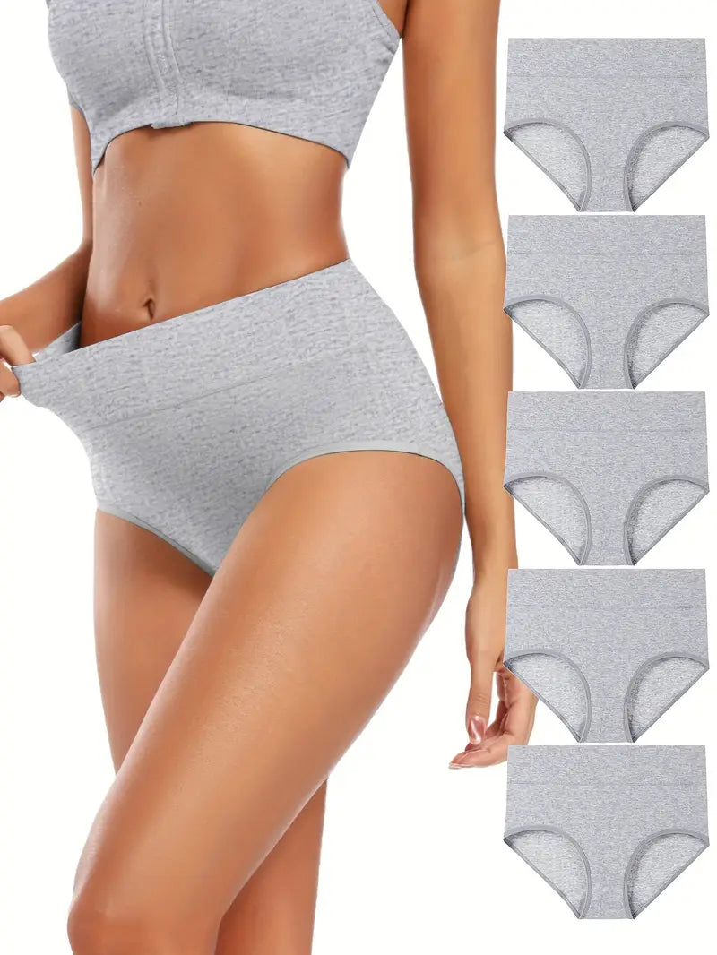 5-dona molasus ayollar uchun yuqori beldagi ichki kiyimlar, turli ranglarda, nafas oladigan va cho'ziluvchan, to'liq qoplash bilan.