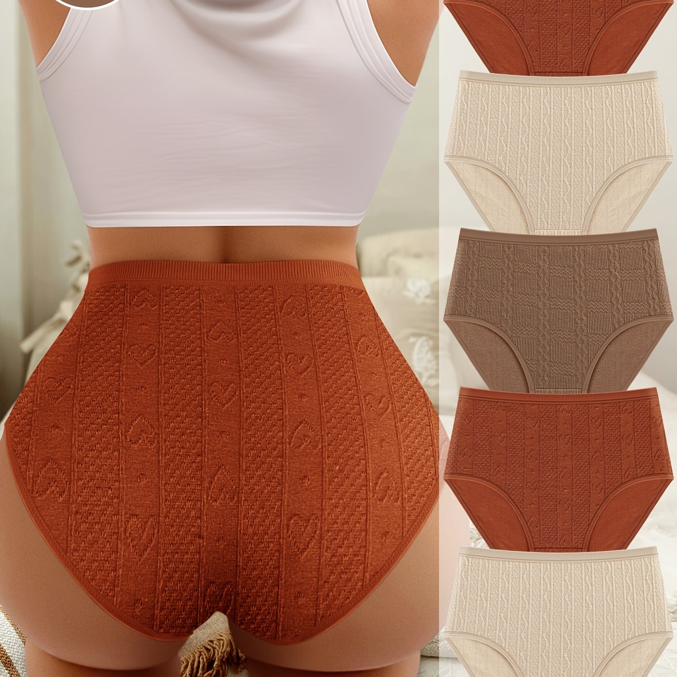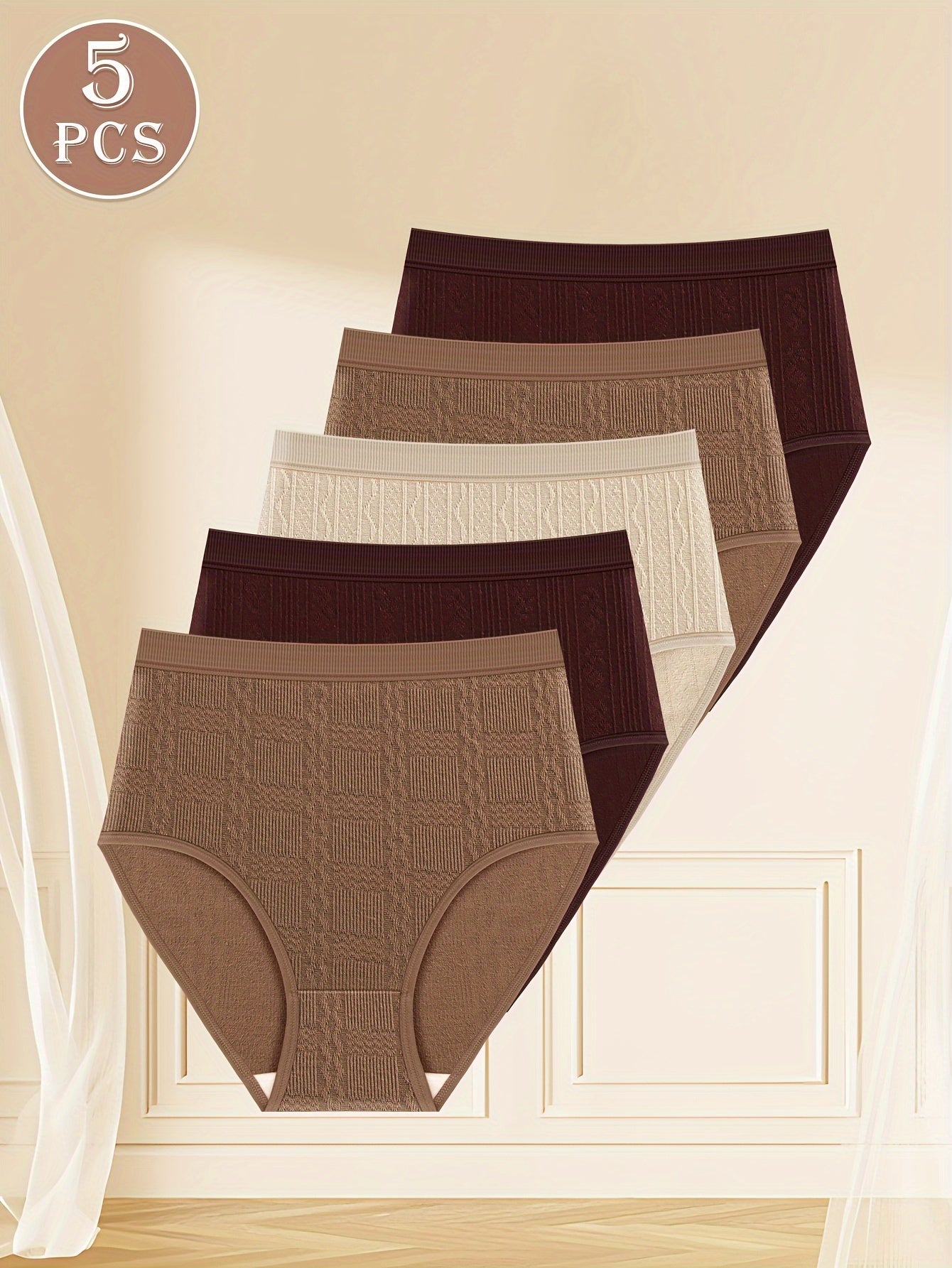 5-dona plus o'lchamdagi o'rta balandlikdagi ichki kiyimlar, qulay va zamonaviy, jakard dizayni bilan
