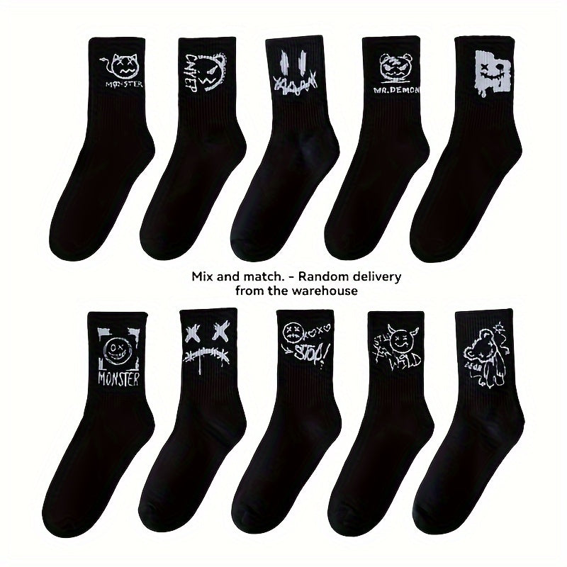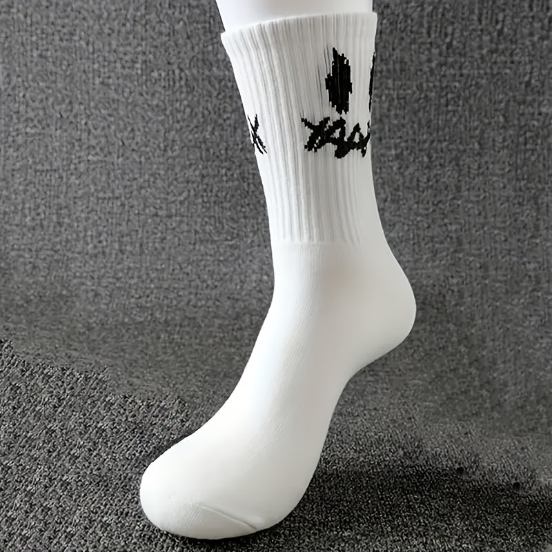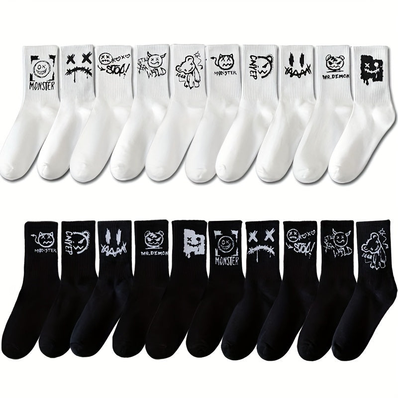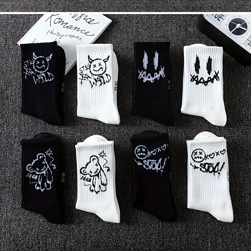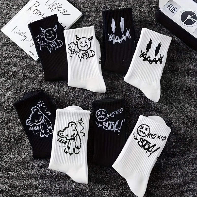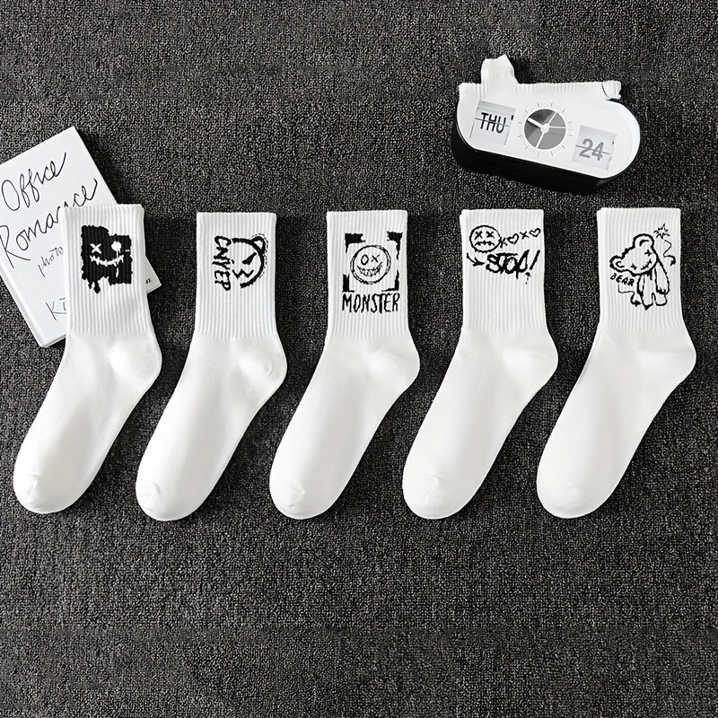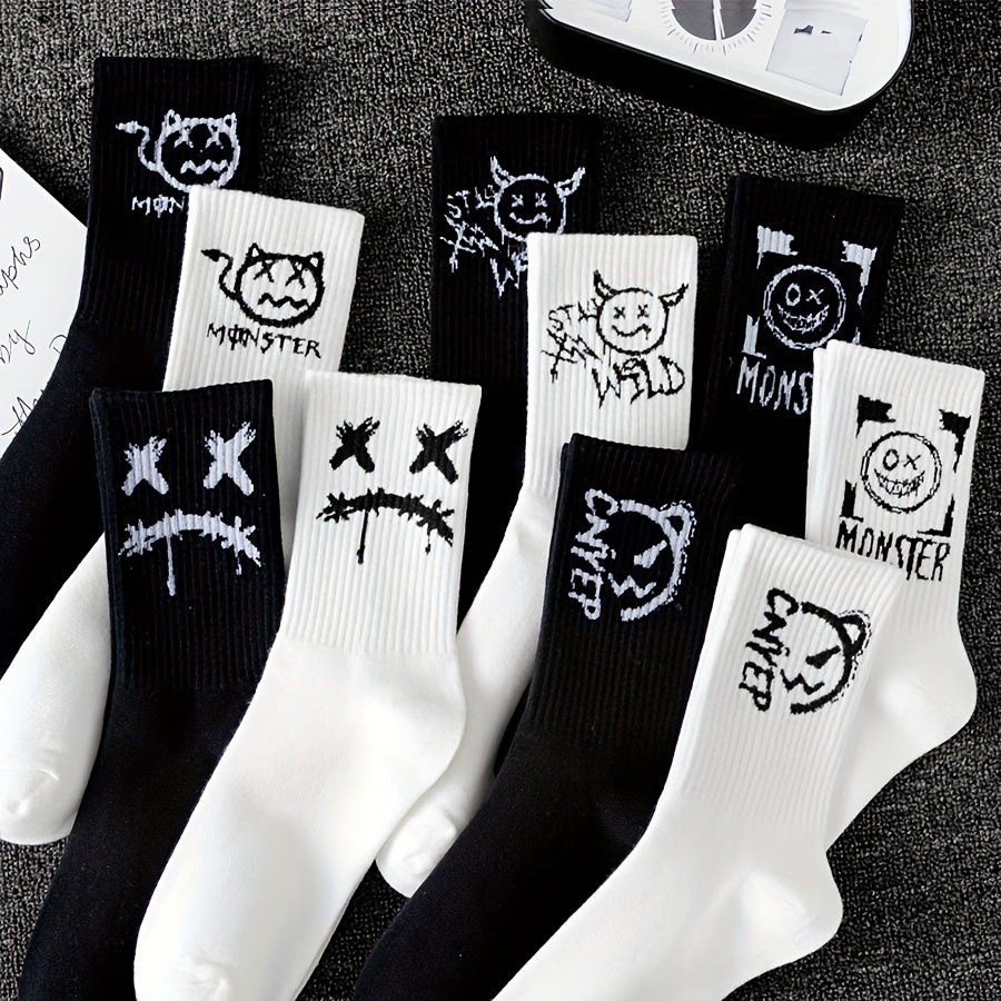Katta o'lchamdagi juftlik paypoq, 5 juft, kulgili yuzlar, geometrik naqsh, to'qilgan polyester, spandeks