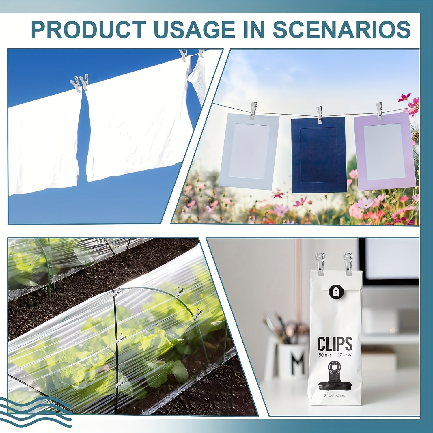 20 dona zanglamaydigan po'latdan yasalgan kiyim kliplari, yorganlarni quritish va ko'p maqsadli rack halqalari uchun
