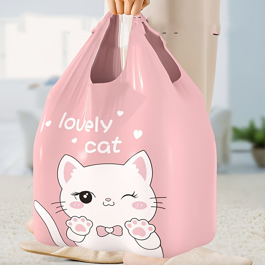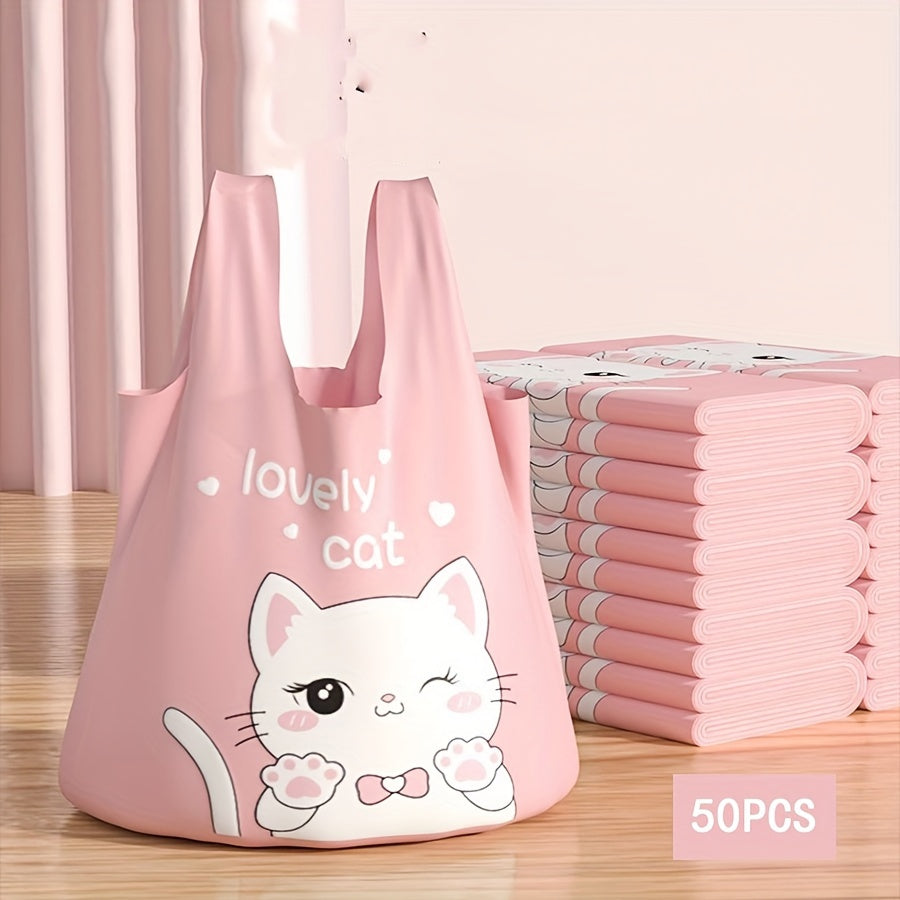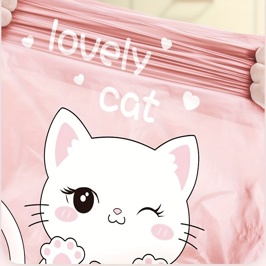 50 ta yoqimli pushti mushuk chirmashli axlat sumkasi, har biri 15.14 litr sig‘imga ega va qo‘shimcha qalin 30μm materialdan tayyorlangan. Uyda yoki xarid qilishda foydalanish uchun ideal.