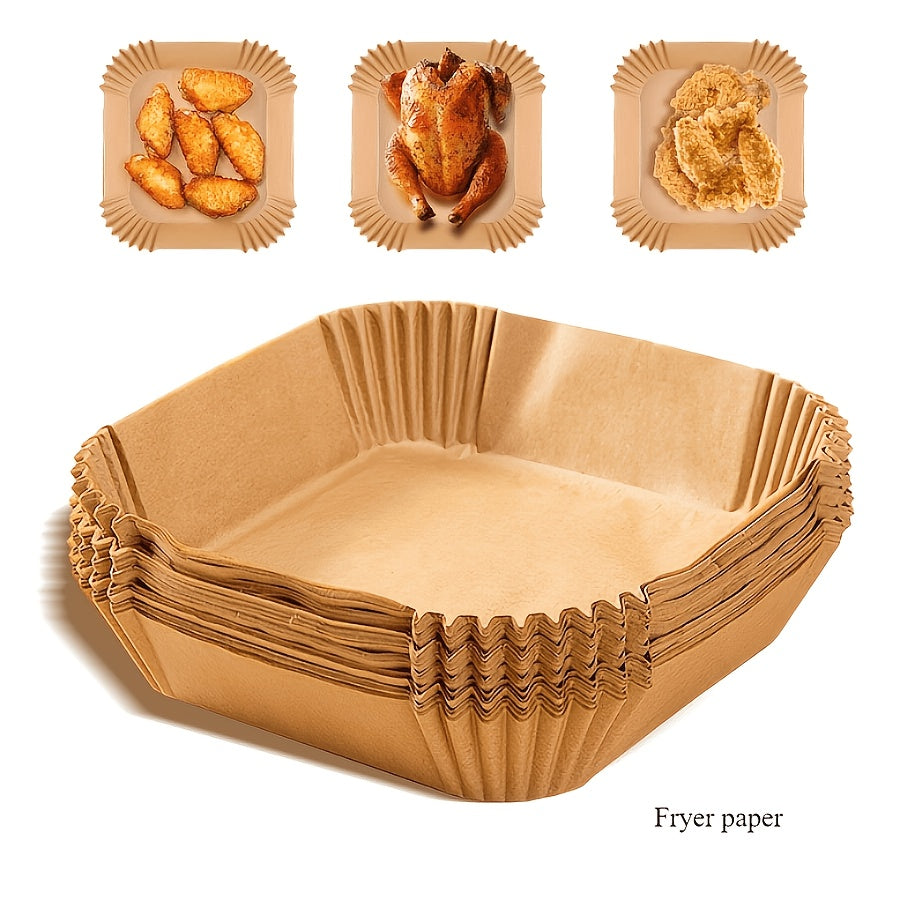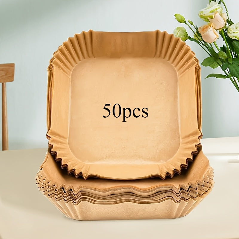 Bir martalik qog'oz linzalar uchun havo fritöz pishirish listlari yopishmaydigan, oziq-ovqat uchun xavfsiz, 50 yoki 100 dona