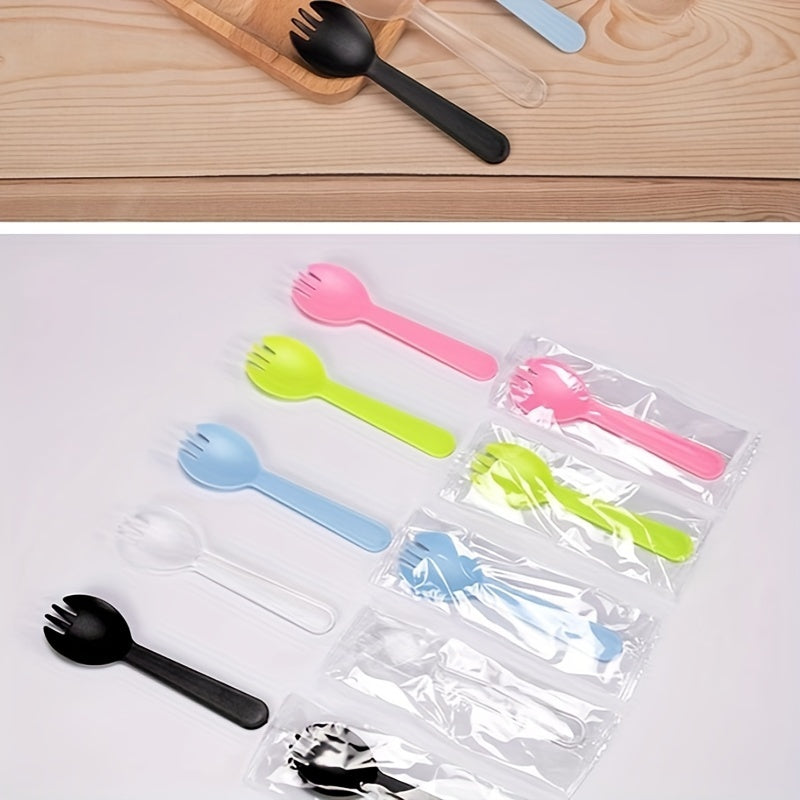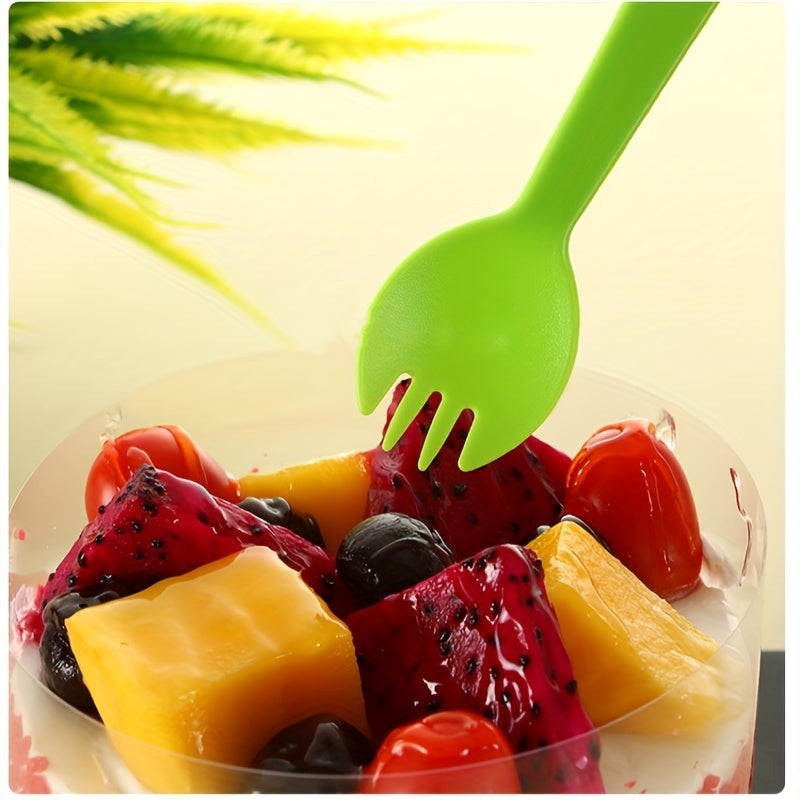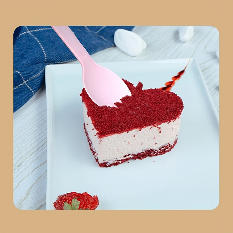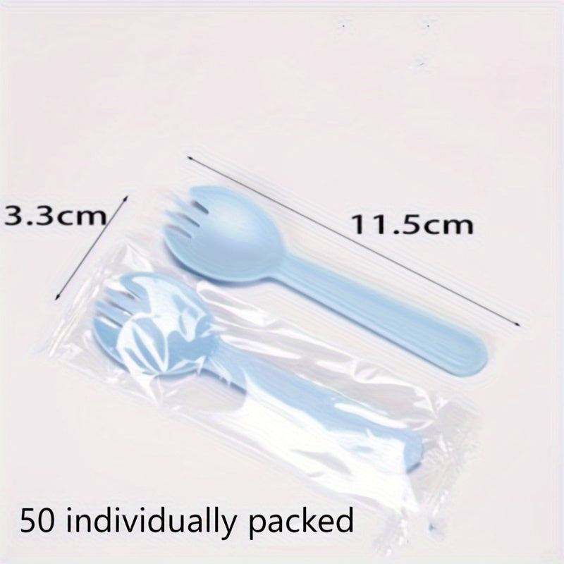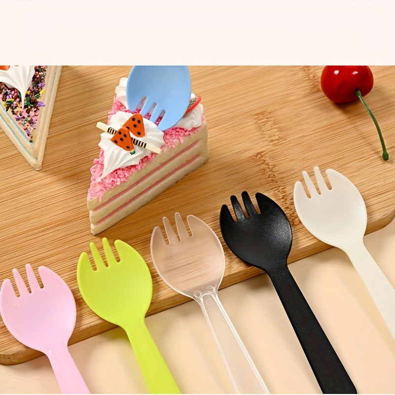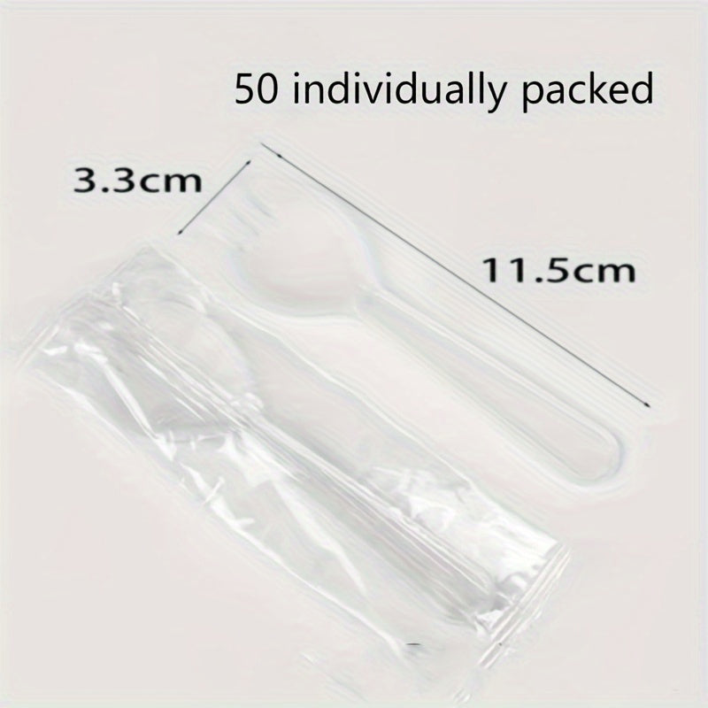 Shirinliklar uchun bir martalik plastmassa qoshiq va vilkalar to'plami, 50 yoki 100 dona