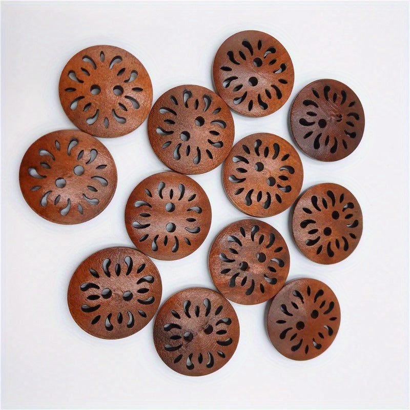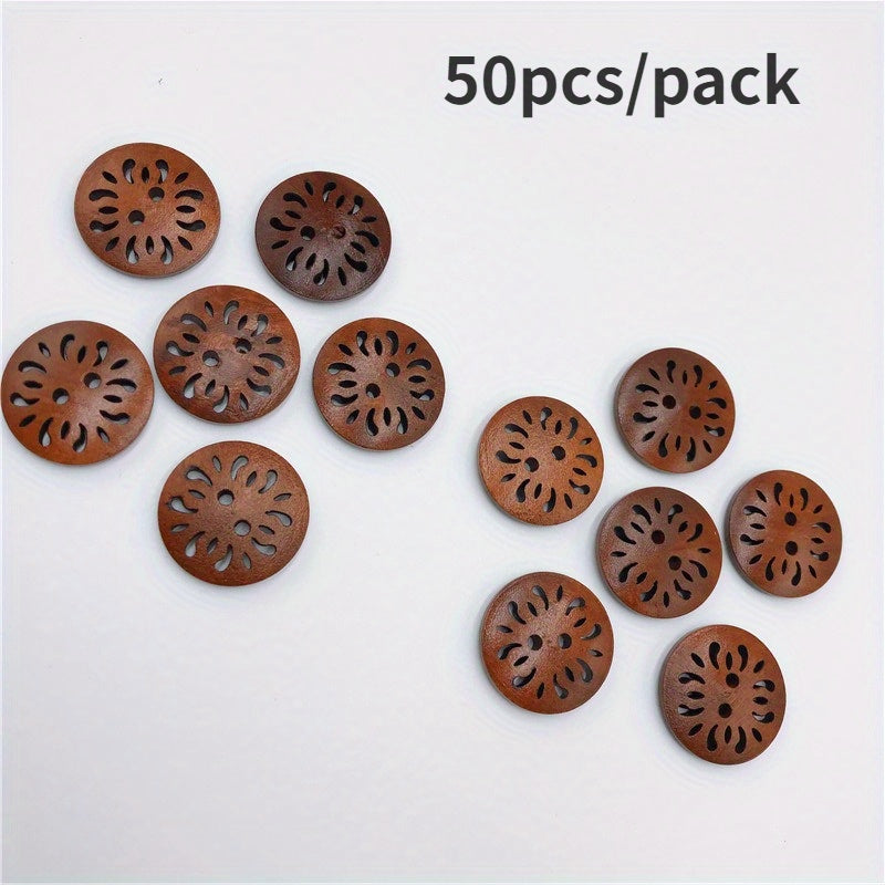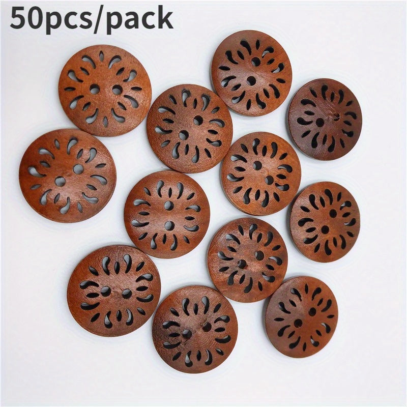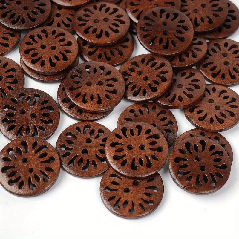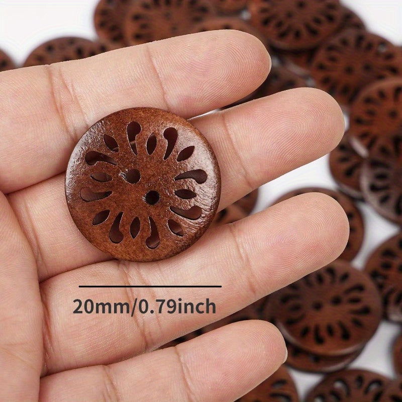 50 dona jigarrang yog'ochli xrizantema tugmalari, 20 mm, ko'ylaklar, sviterlar, palto uchun