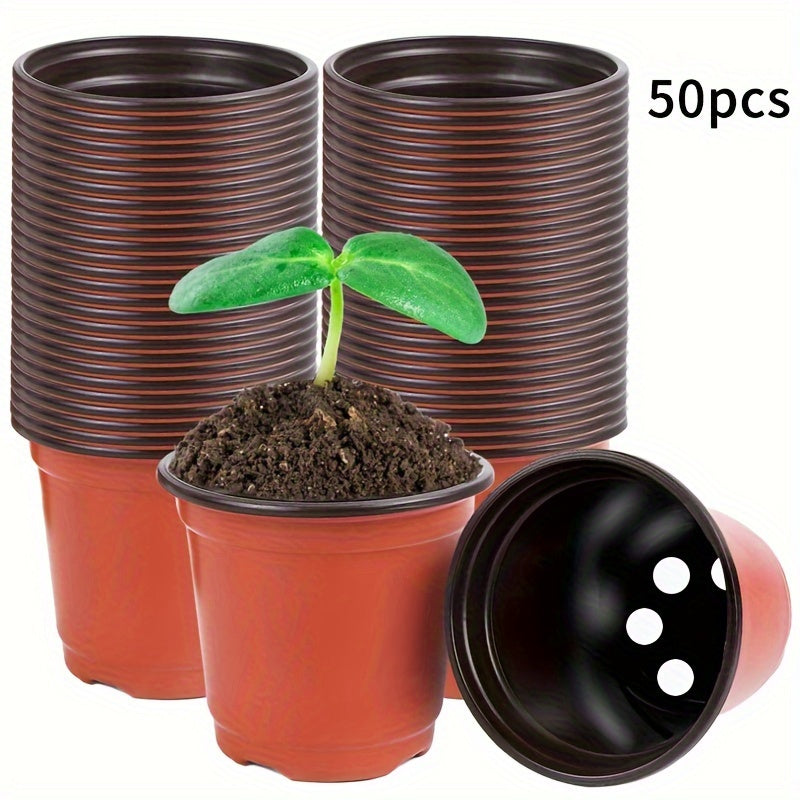 50 ta ekin idishlari drenaj teshiklari bilan, sukkulentlar, sabzavotlar, gullar va saplinglar uchun