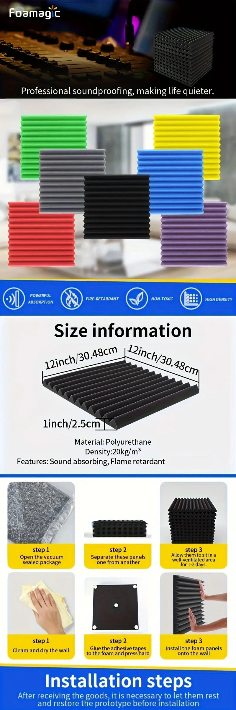 50 dona akustik ko‘chma devor panellari, Vorteks ovoq yopishtiruvchi panellar, 2.54cm x 30.48cm