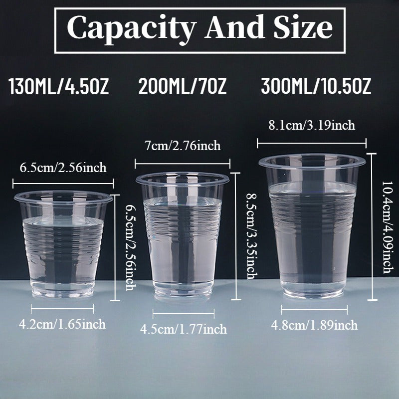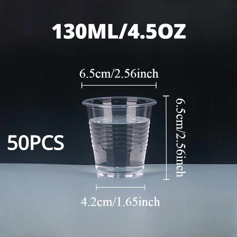 Bir martalik plastmassa stakanlar 50-100 ta, shaffof, qayta ishlash mumkin, atıştırmalıklar, ichimliklar, partiyalar uchun