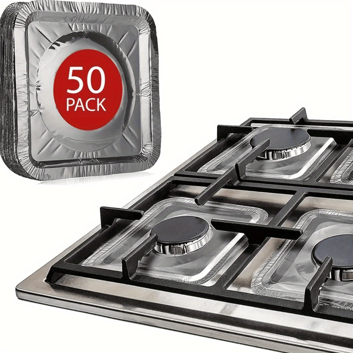 50 dona bir foydalanish uchun alüminium gaz plitasi o'choq yonilg'isi qoplamalari, 21.59 sm kvadrat issiqlikka chidamli pishirish panelini himoya qilish