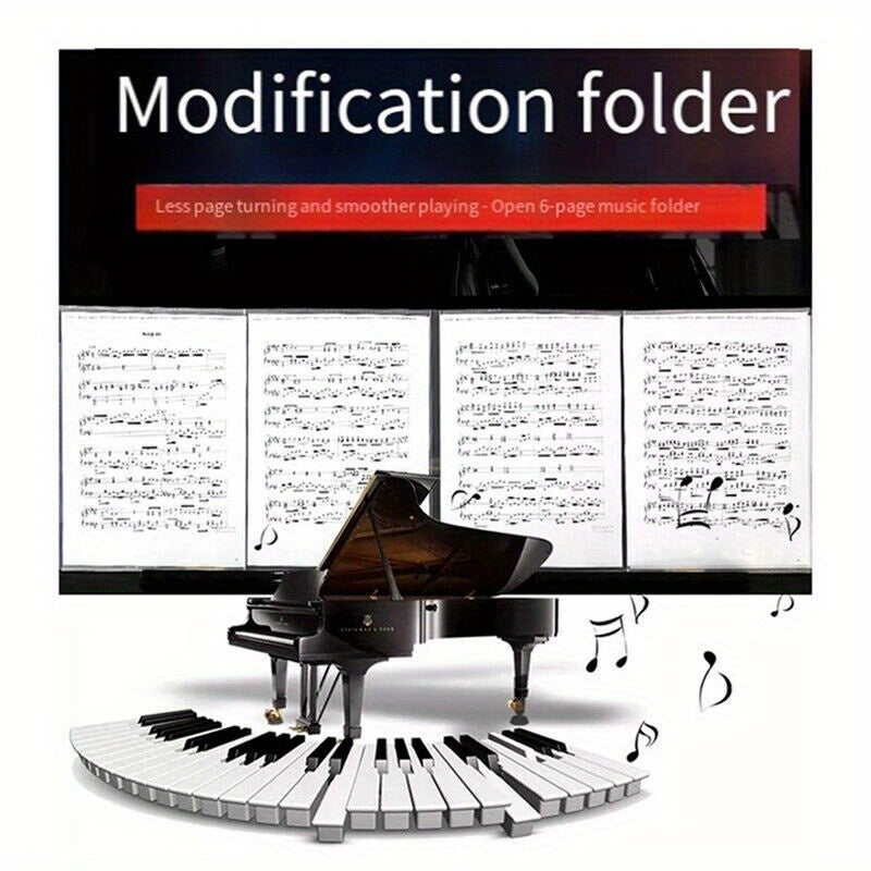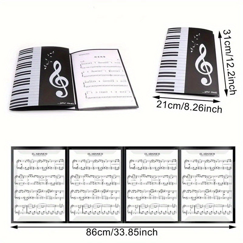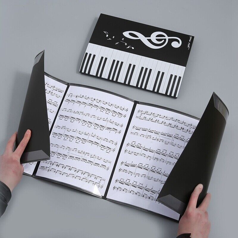 A4 musiqa varaqasi uchun qora 3-qavatli PP plastmassa, pianino klaviaturasi va notalar bilan, ijro uchun, o'qituvchilar va sovg'alar uchun