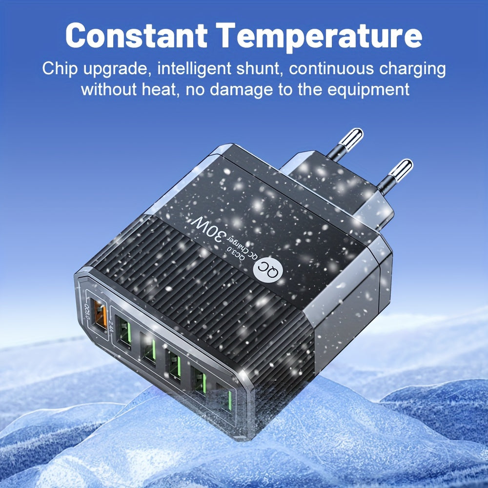 6-port USB devor zaryadkasi 30W tez zaryadlash QC 3.0 EU rozetkasi uchun mobil qurilmalar