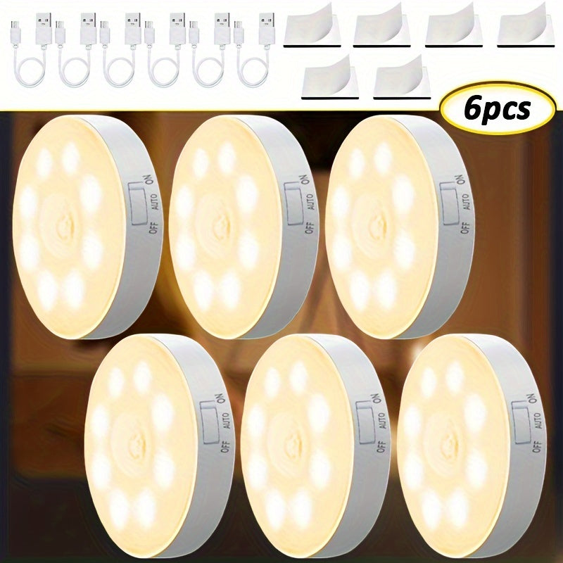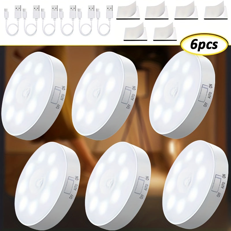 6 ta USB orqali zaryadlanadigan LED chiroqlar, o'qish va uy bezaklari uchun harakat sensorli, yashash xonasi, ofis va bolalar xonasi uchun.