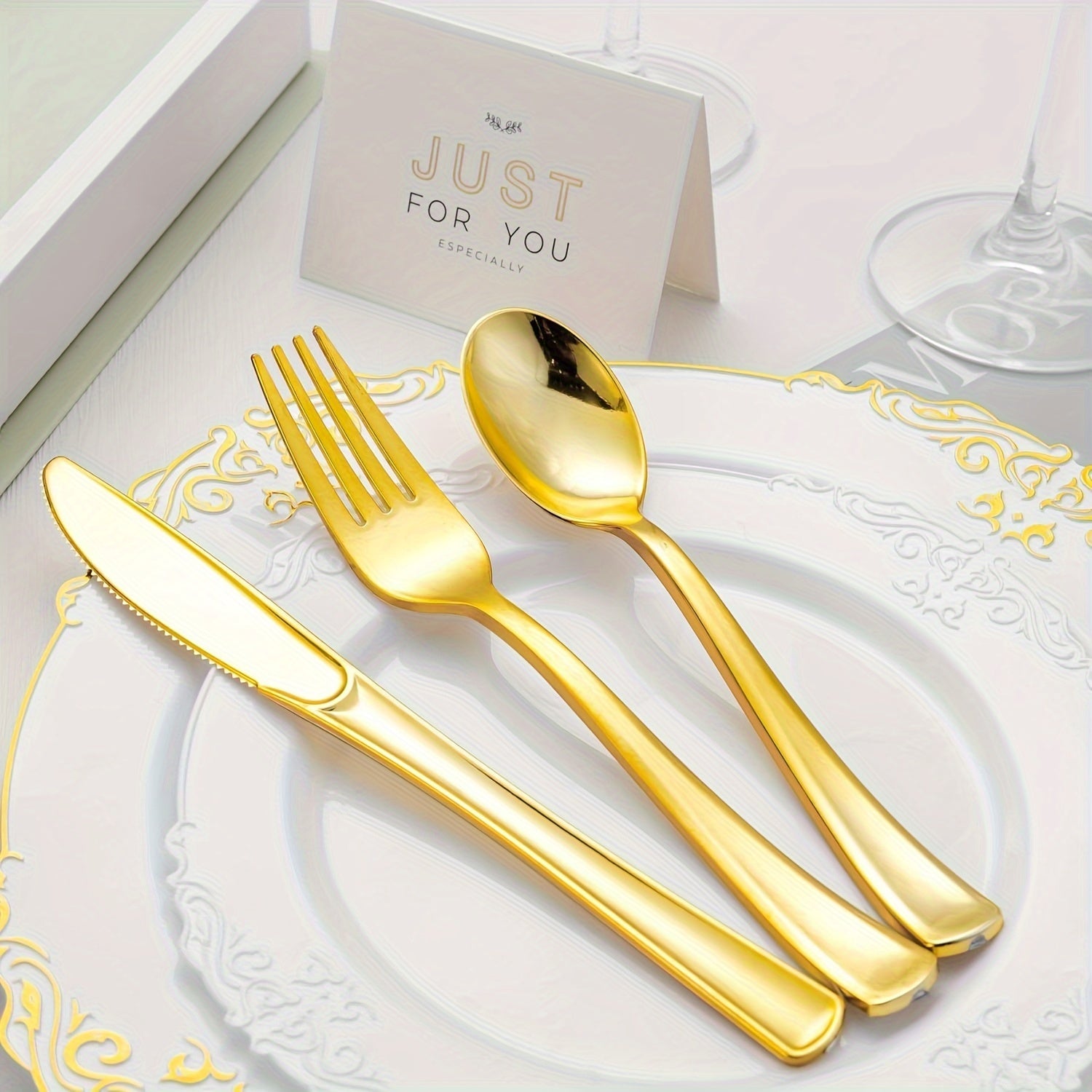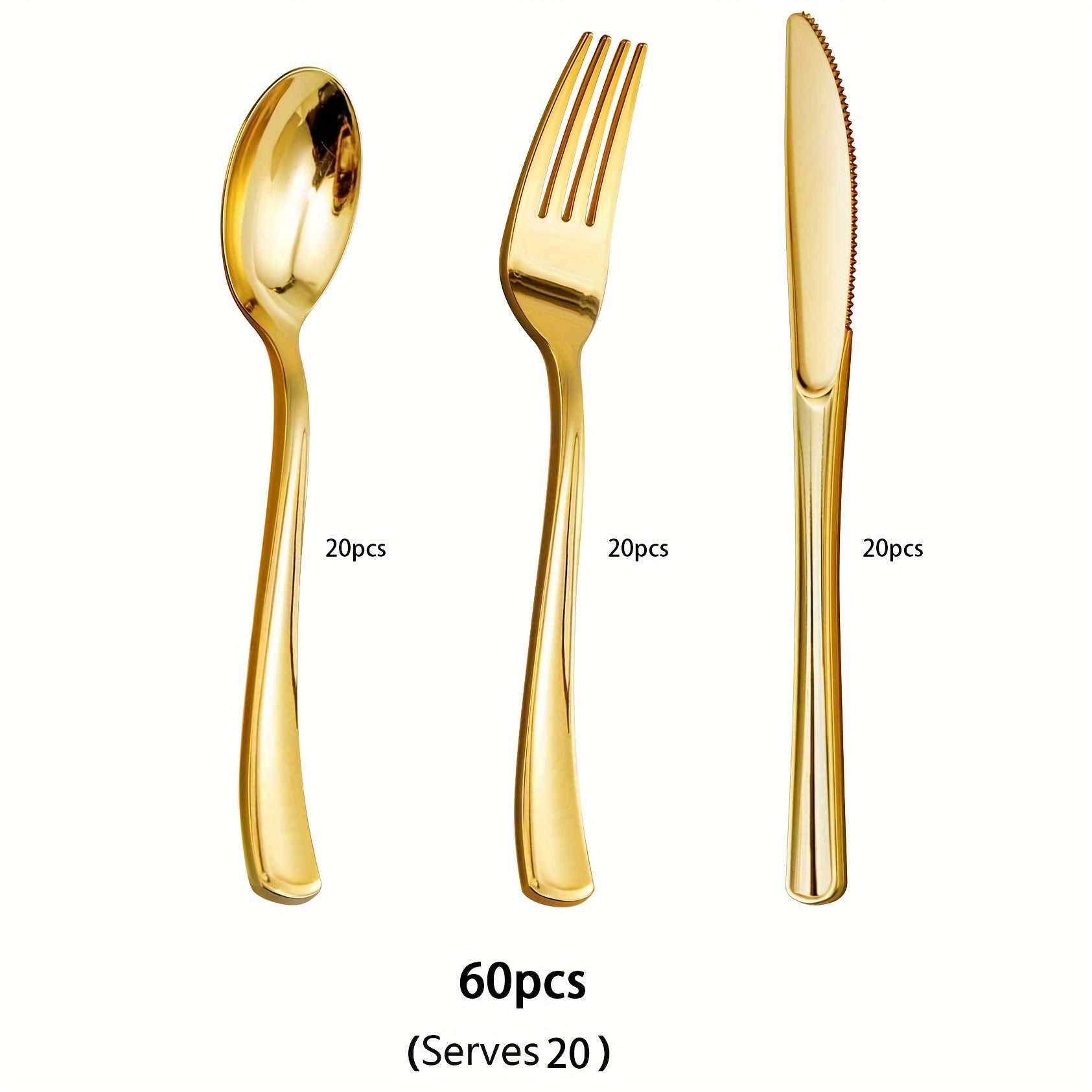 To'ylar va bayramlar uchun 60 ta qismdan iborat bir martalik oltin plastmassa idishlar to'plami