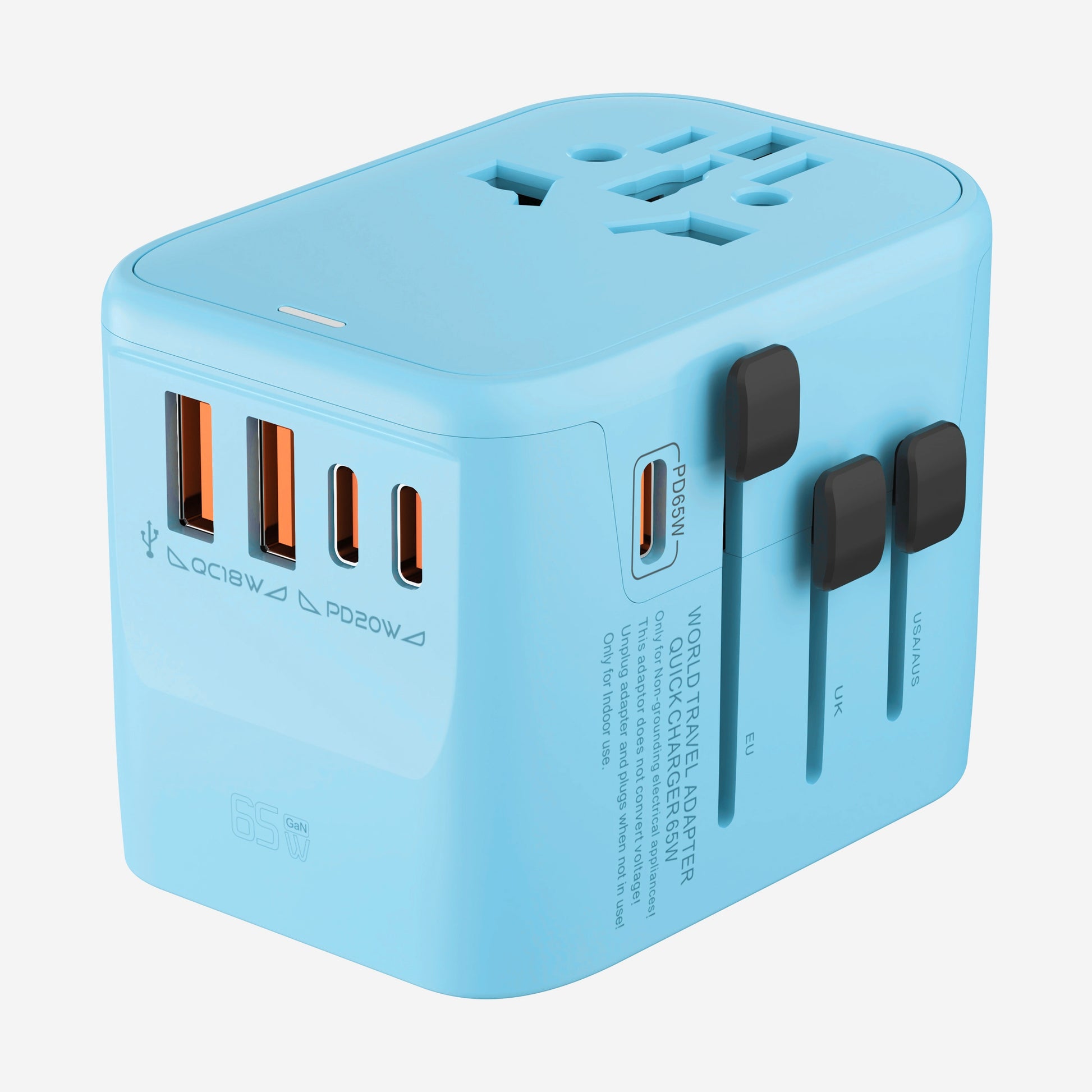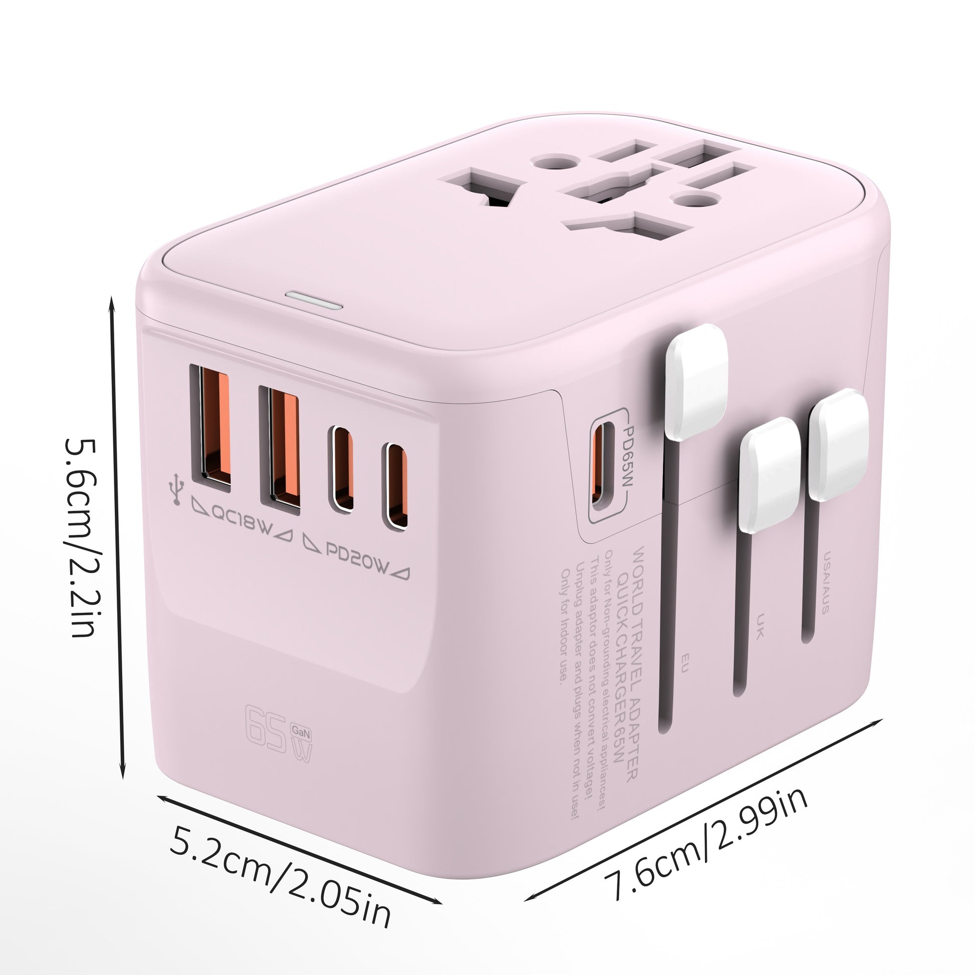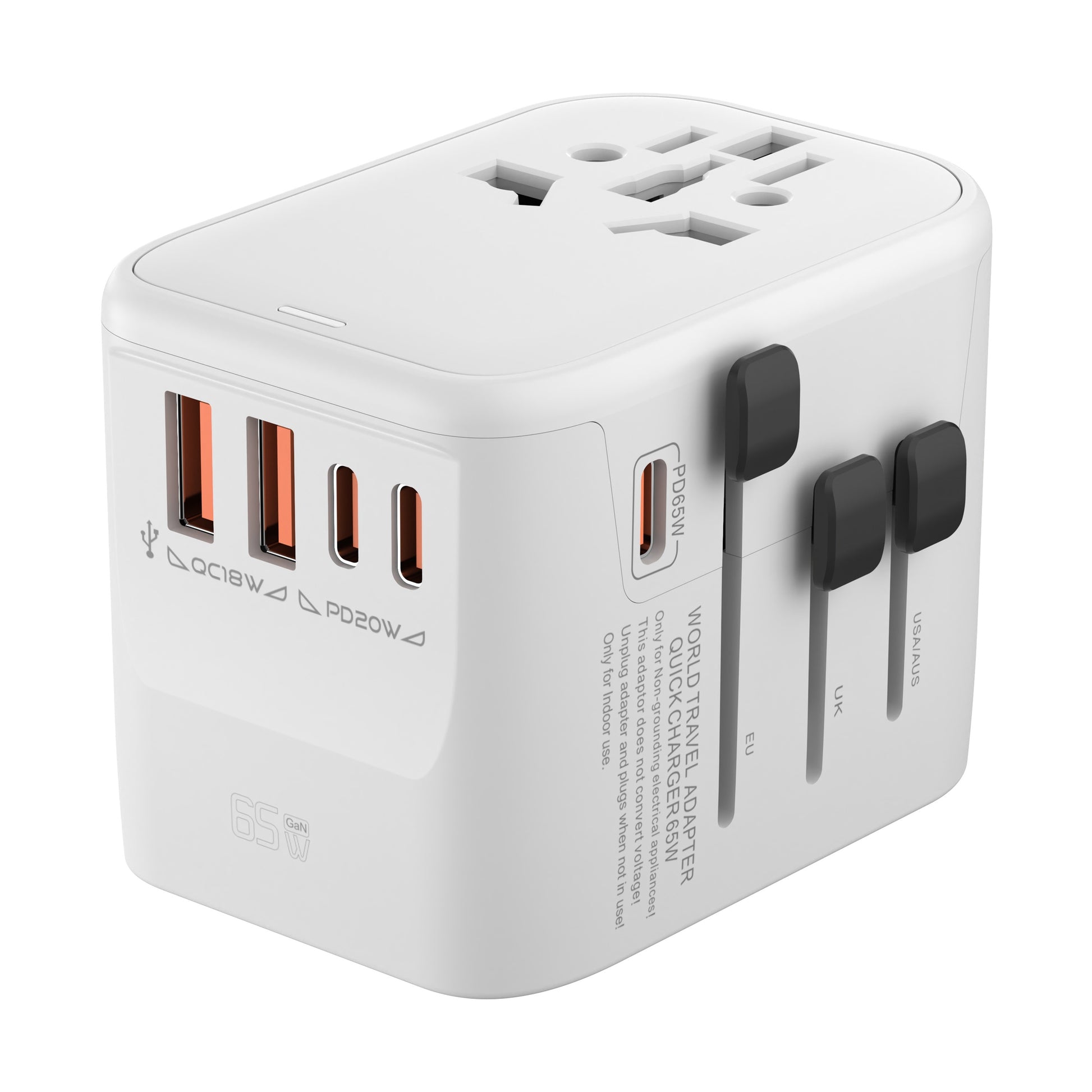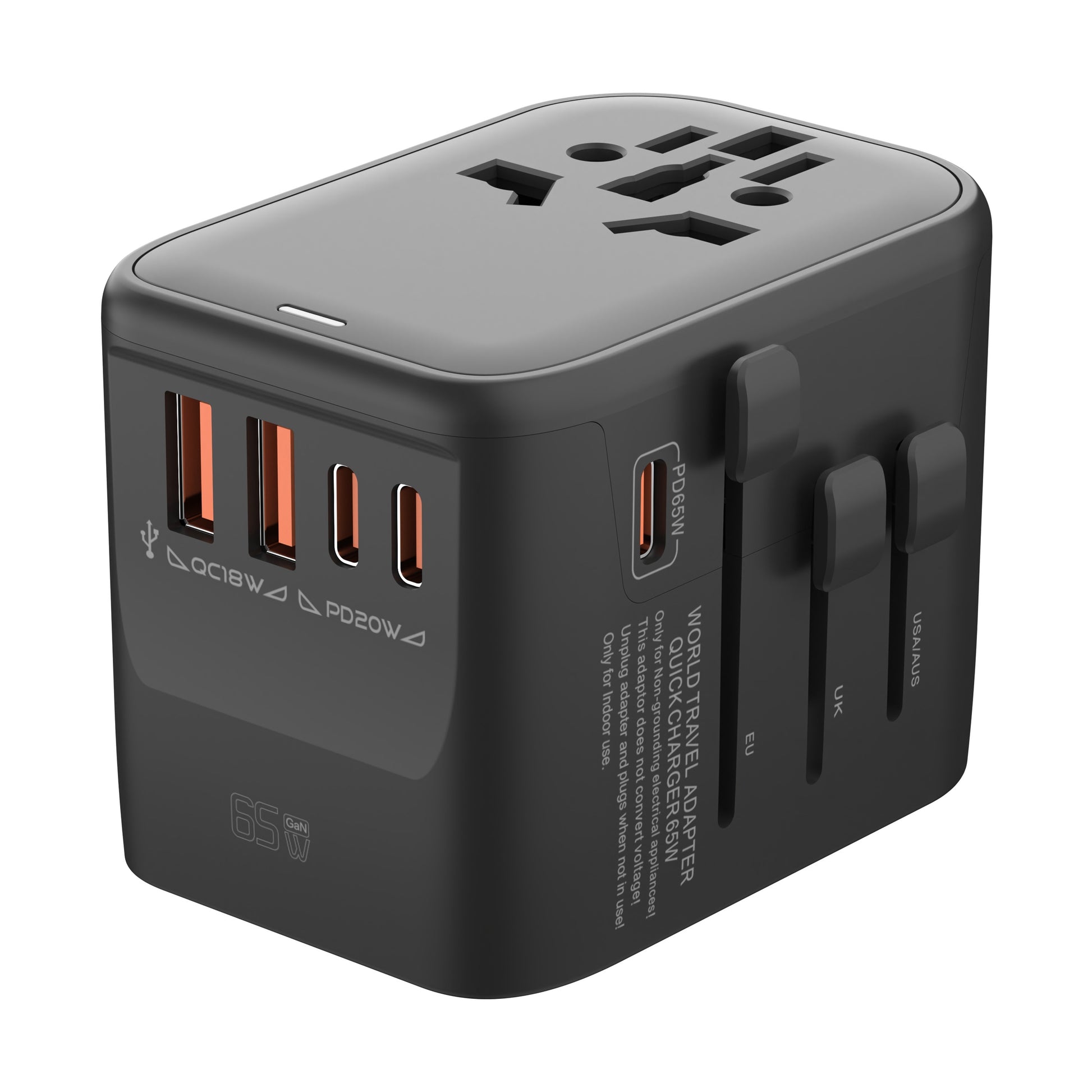 65W GaN tez zaryadlovchi Type-C sayohat adapteri, AQSh, Buyuk Britaniya, Yevropa Ittifoqi va Avstraliya standartlariga mos