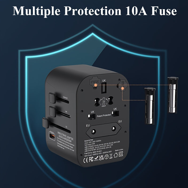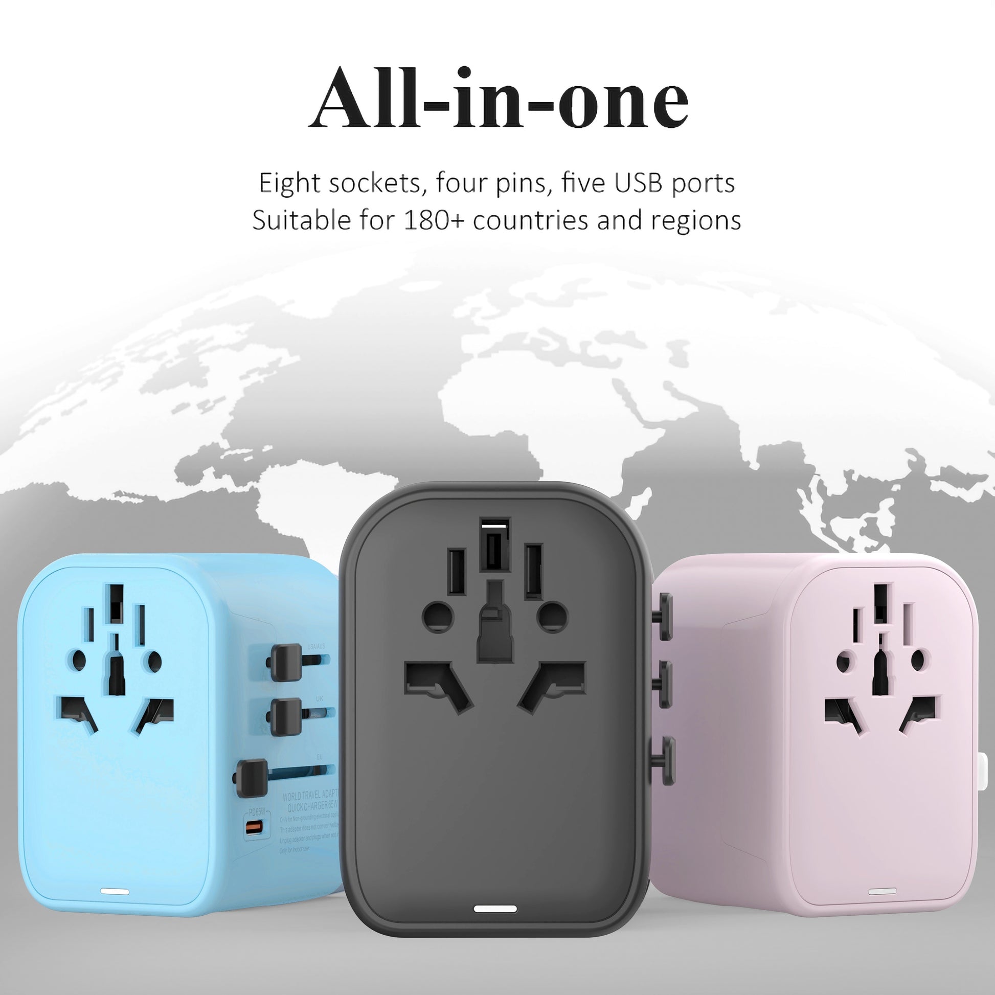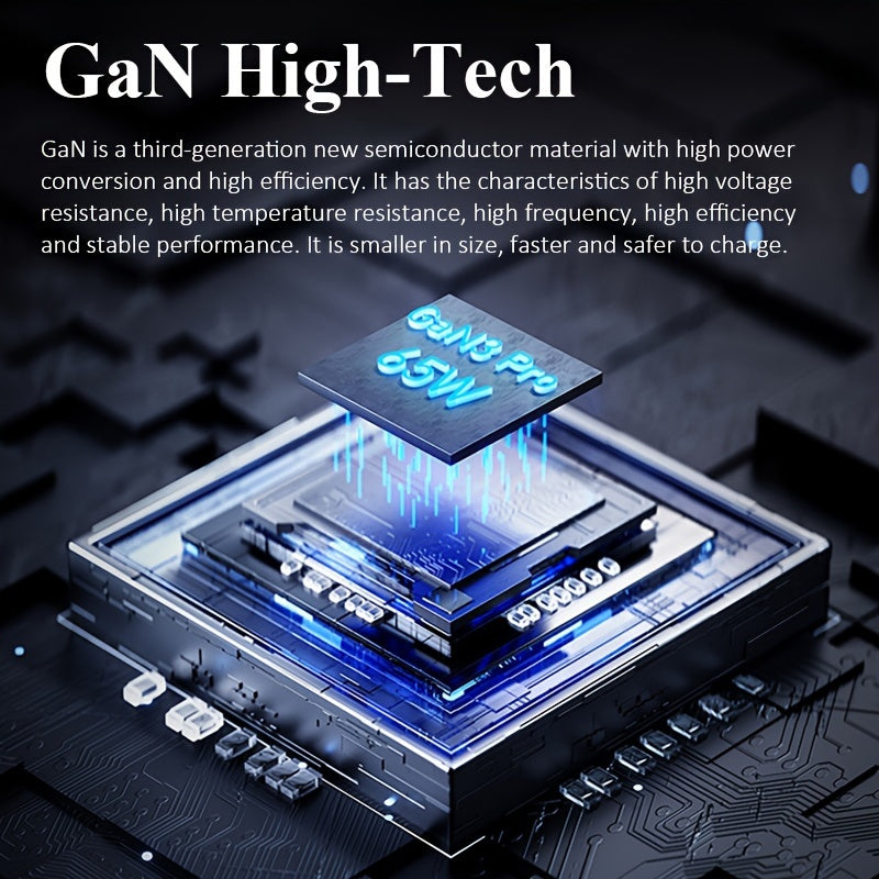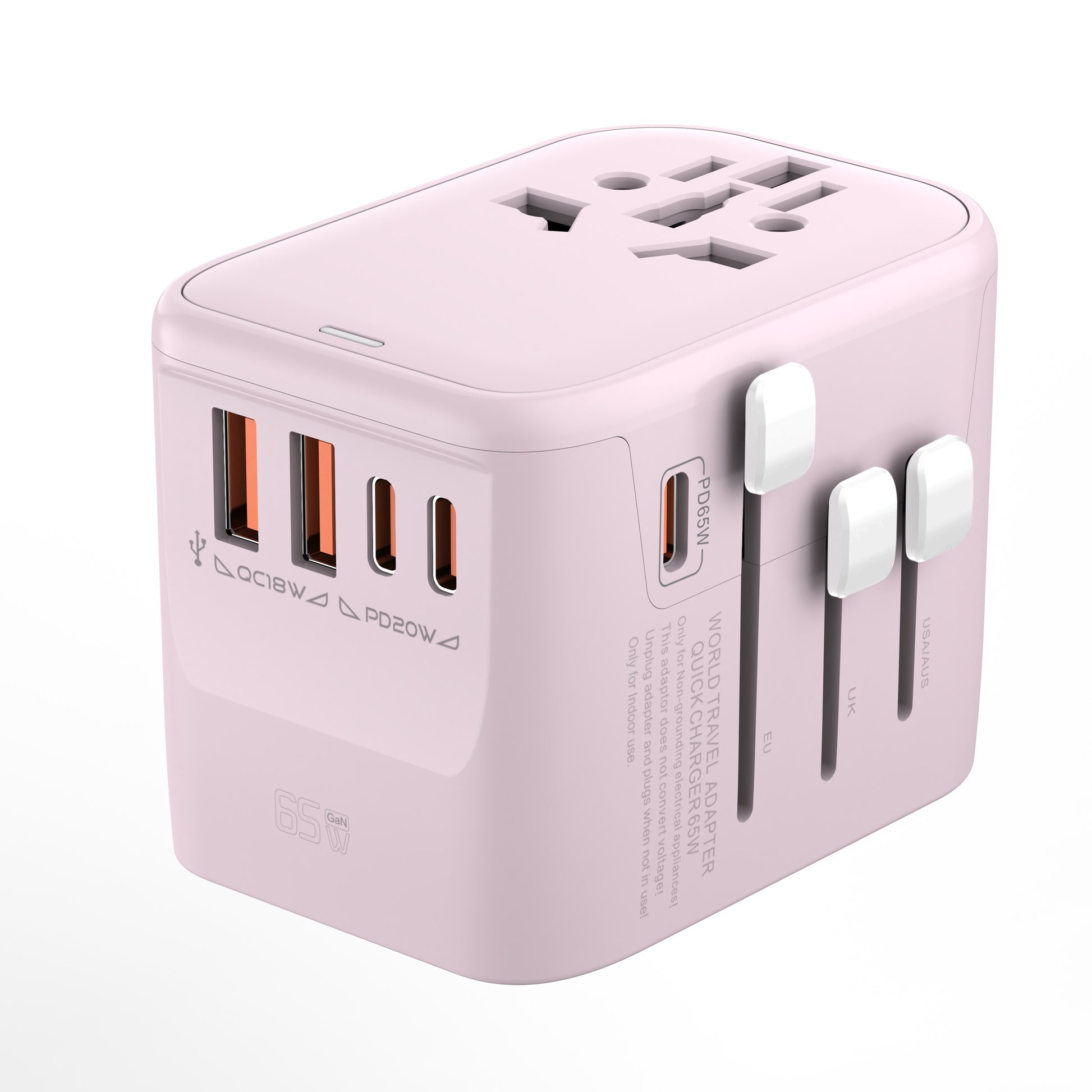 65W GaN tez zaryadlovchi Type-C sayohat adapteri, AQSh, Buyuk Britaniya, Yevropa Ittifoqi va Avstraliya standartlariga mos