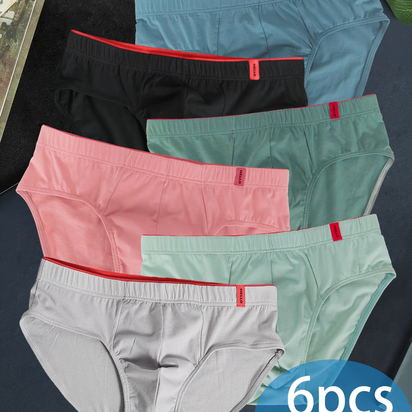 6 dona erkaklar uchun nafas oladigan paxta uchburchakli ichki kiyimlar, yuqori elastik belbog' bilan, kundalik bokser shortlari