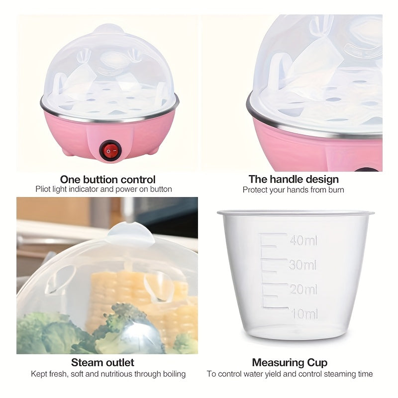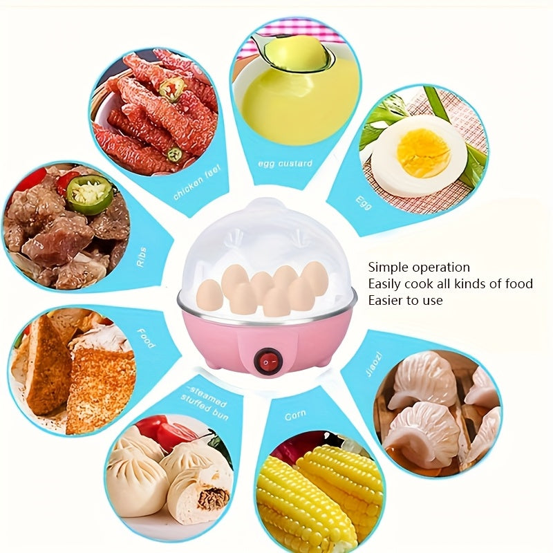 7 tuxum sigʻimi avtomatik oʻchirish tuxum pishiruvchi, zanglamaydigan poʻlatdan yasalgan isitish plitasiga ega