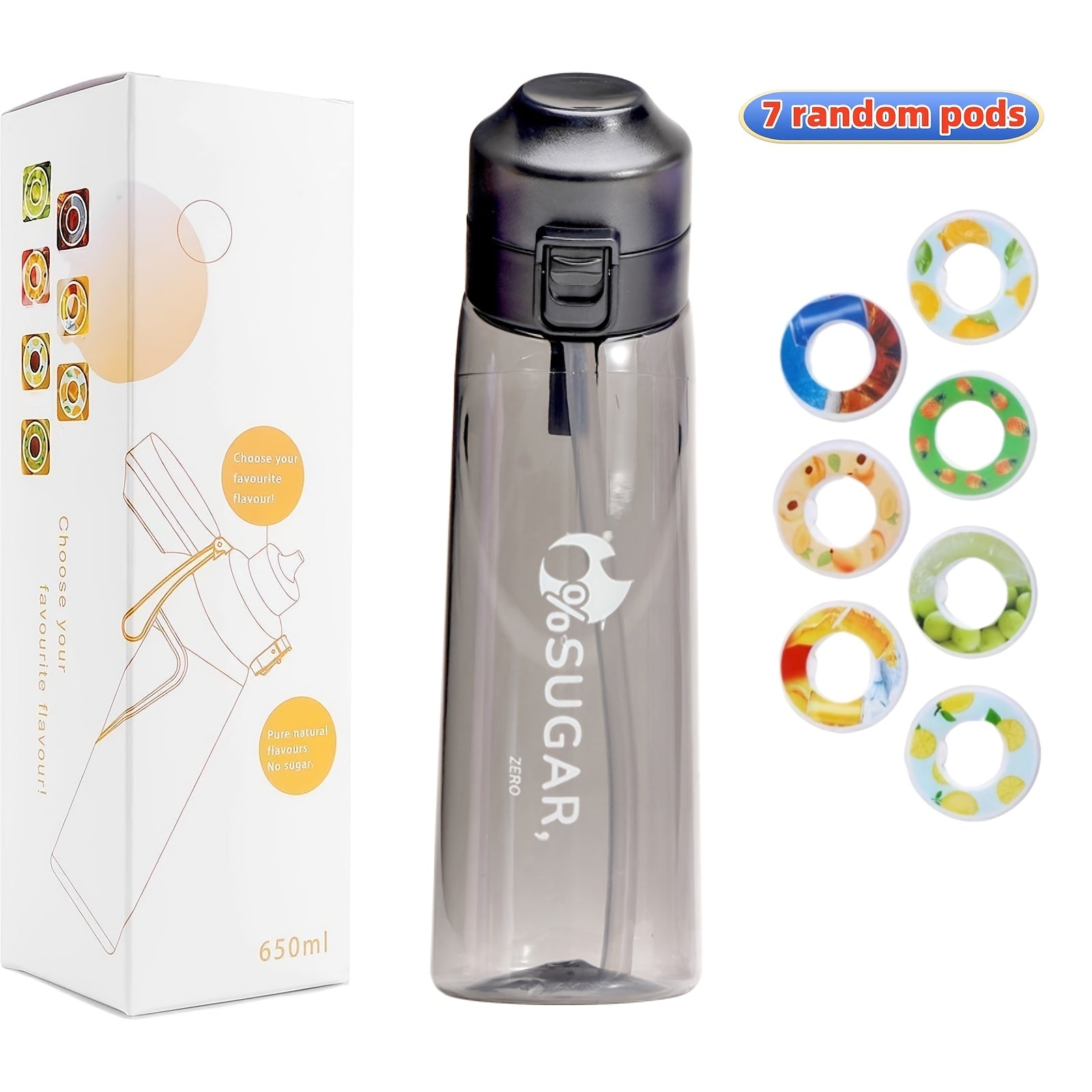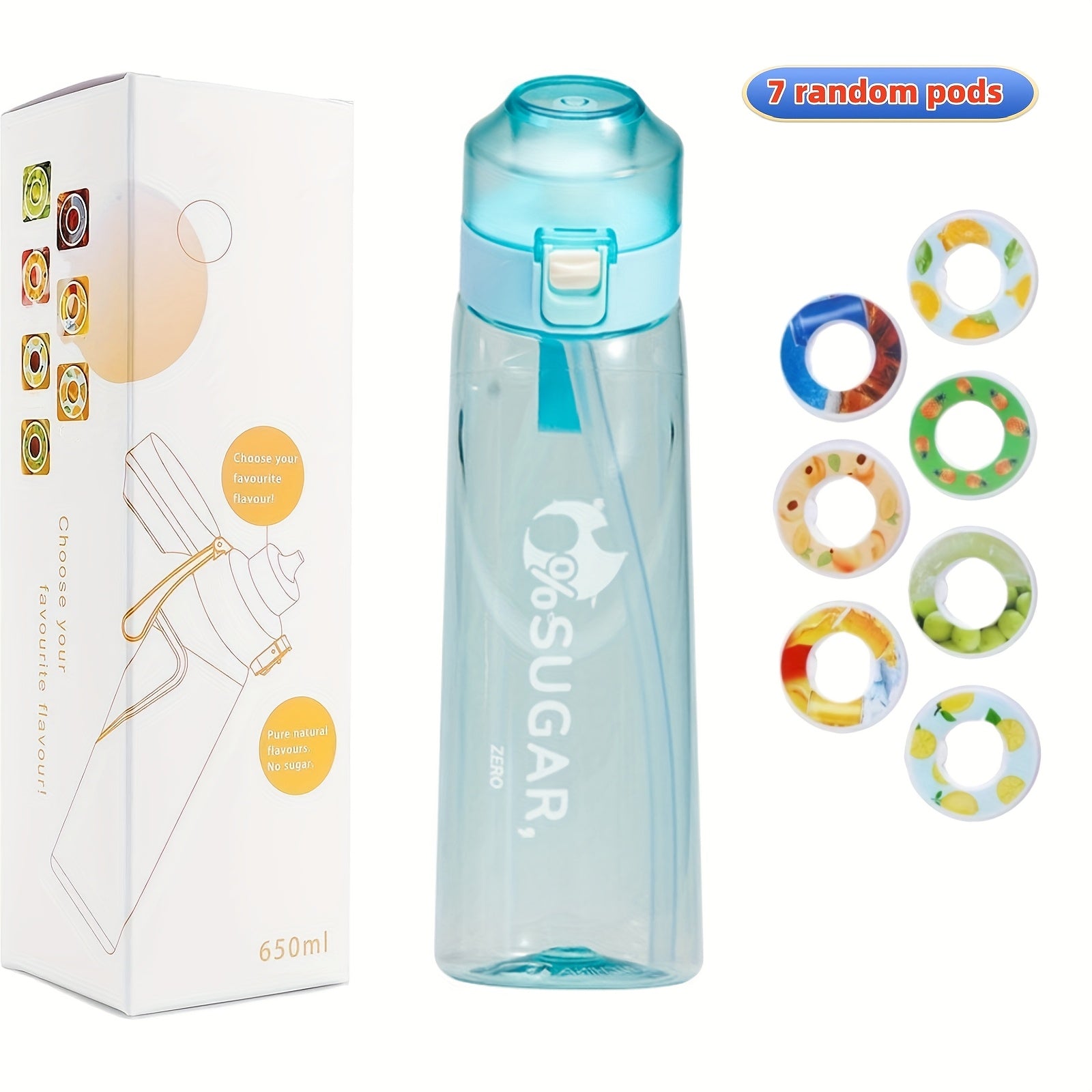 7 ta meva ta'mi podlari va ichimlik shishasi to'plami, sport suyuqlik shishasi va aromatizatorli ta'mi podlari bilan