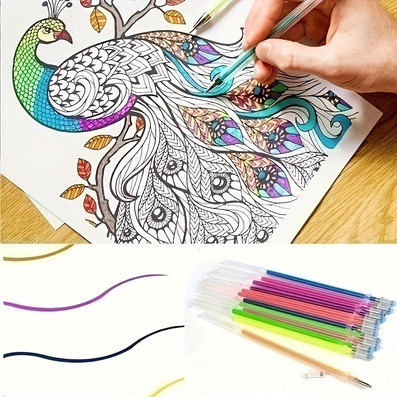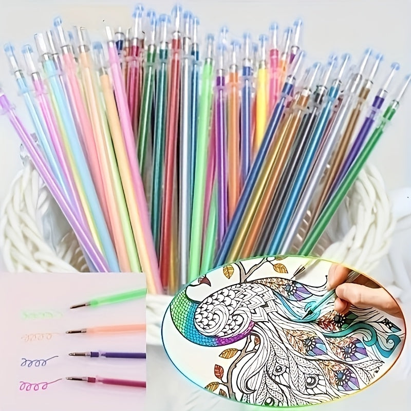 72-та гель ручка учун қайта тўлдиришлар, кўпрангли металлик флуоресцент 0.8мм жўғрофий нуқта, офис ва мактаб учун
