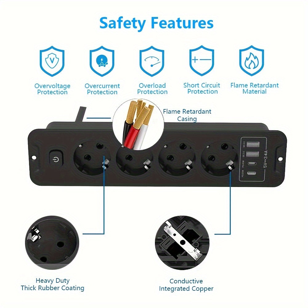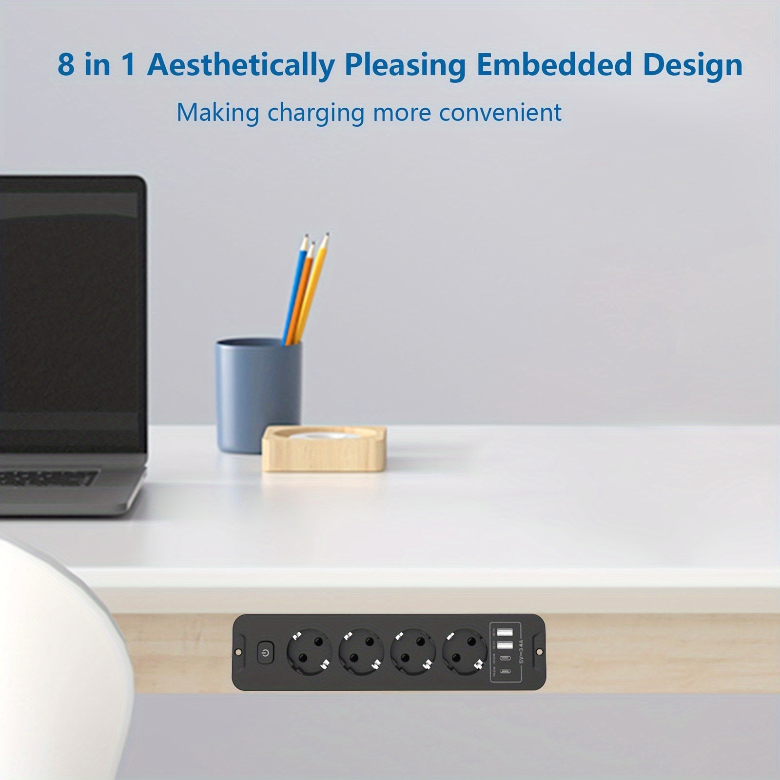 8-in-1 Quvvatli rozetka, 4 USB port va 4 AC rozetkali, 179.83cm sim bilan uy, ofis va maktab uchun