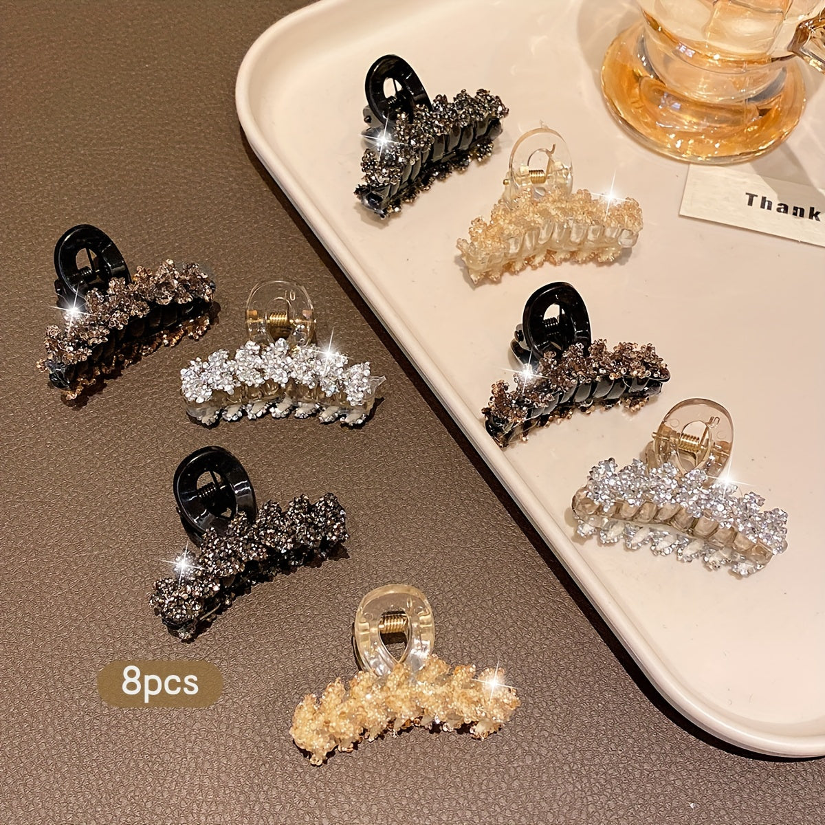8 ta koreyscha gullar dizaynidagi plastik soch qisqichlari, kundalik foydalanish uchun mos.