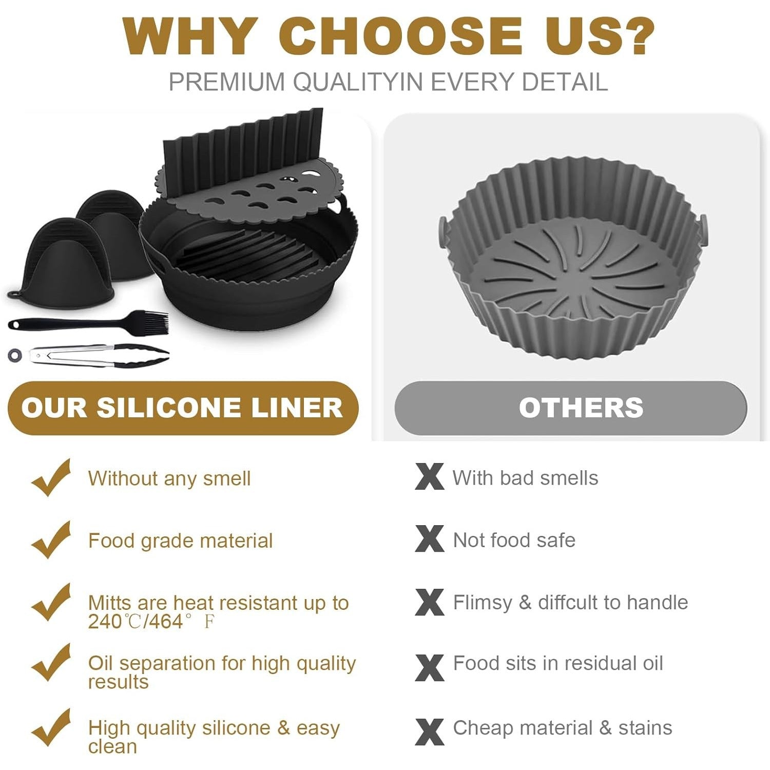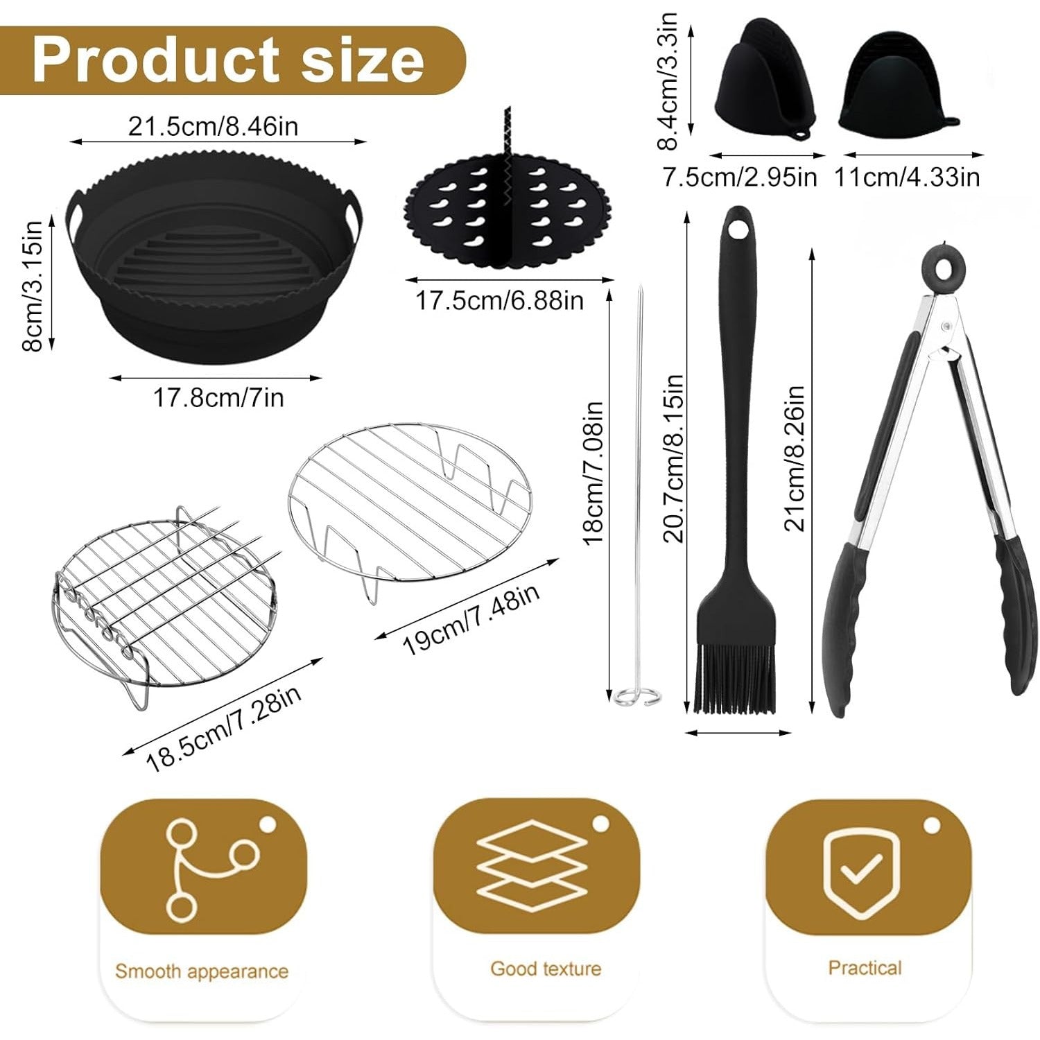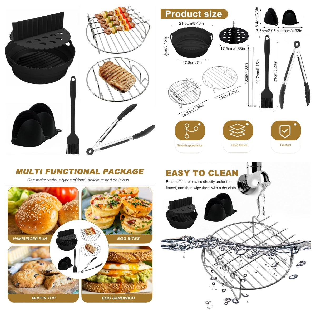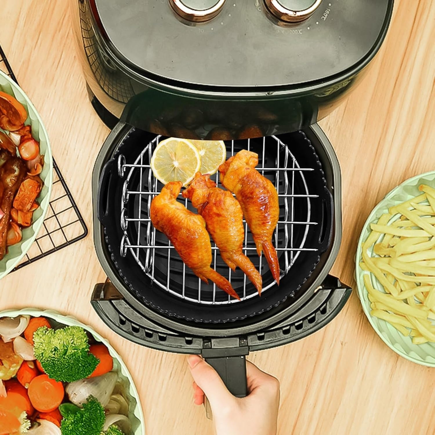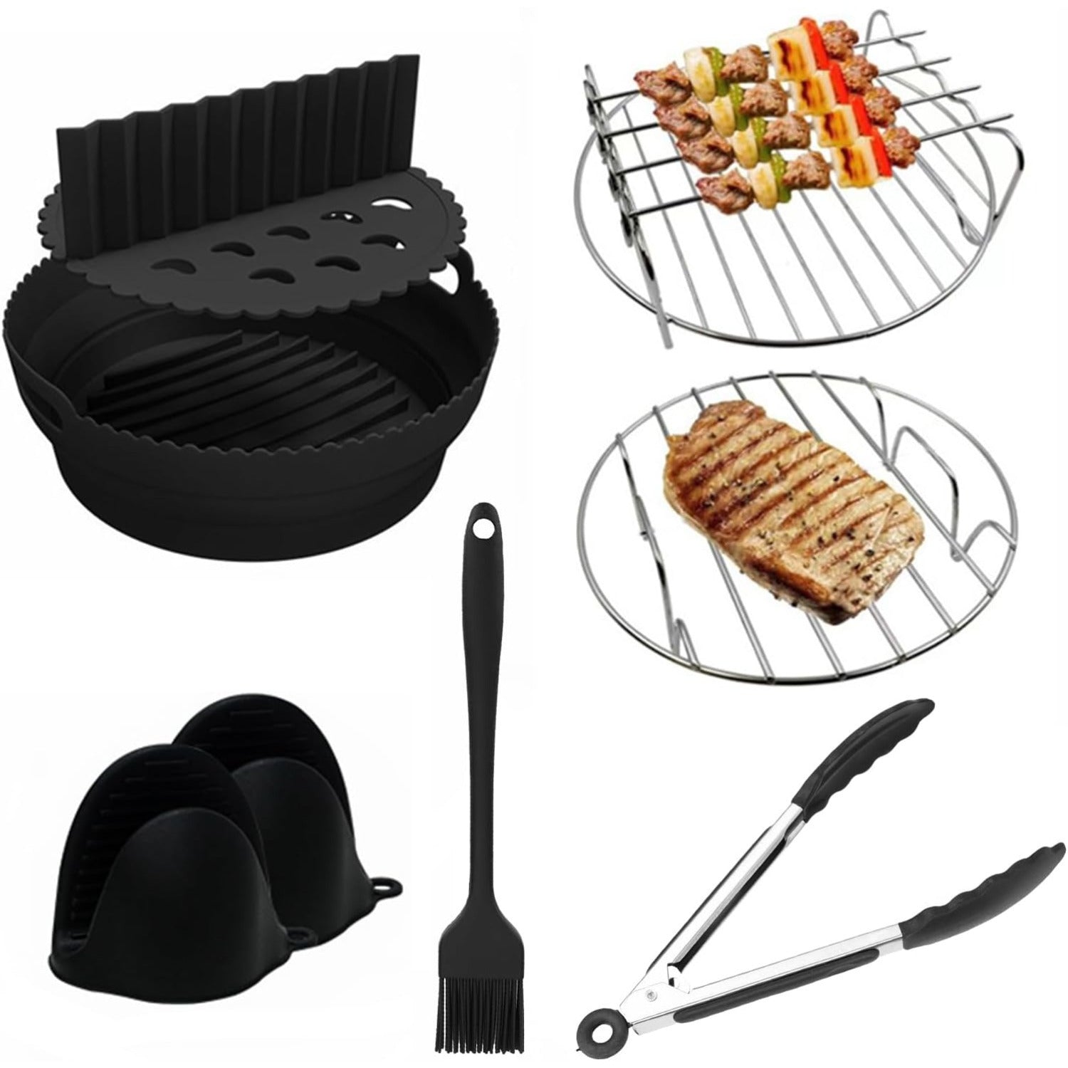 8-chiqishli Havo Fritöz uchun aksessuarlar to'plami, Silikon savat va po'lat rack bilan