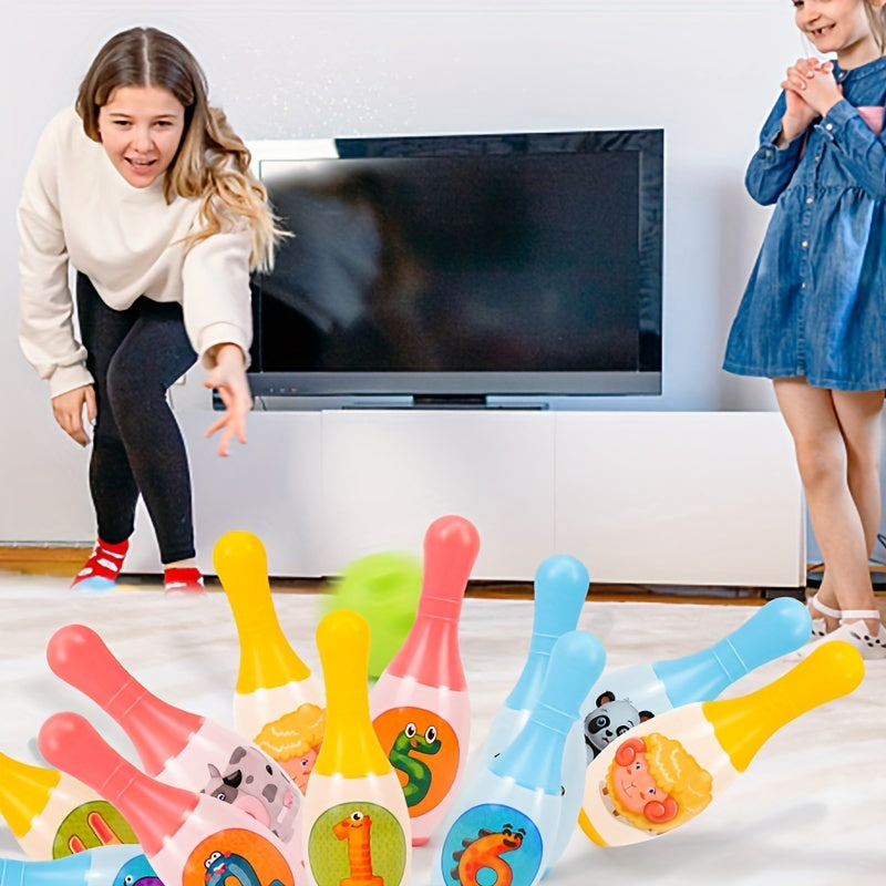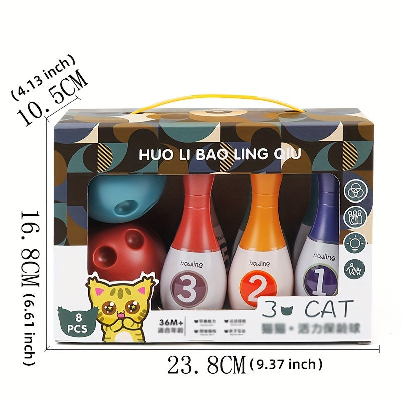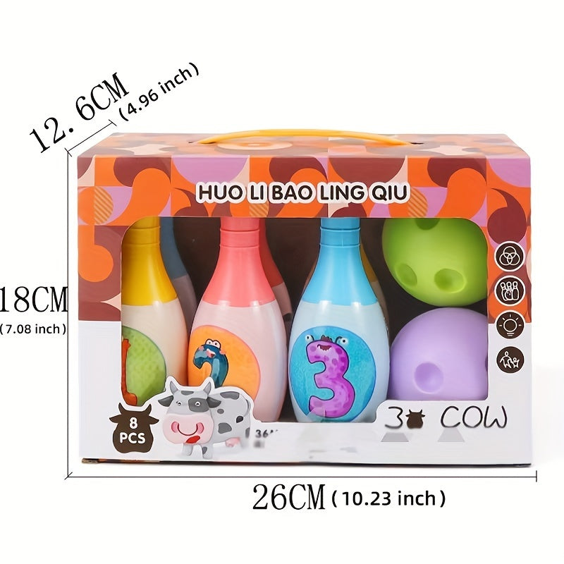 8-chiqishli bolalar uchun bowling o'yinchoq to'plami, ichki va tashqi o'yinlar uchun, ko'k va rang-barang