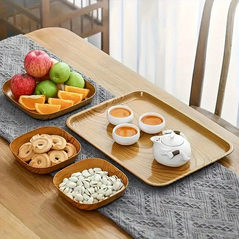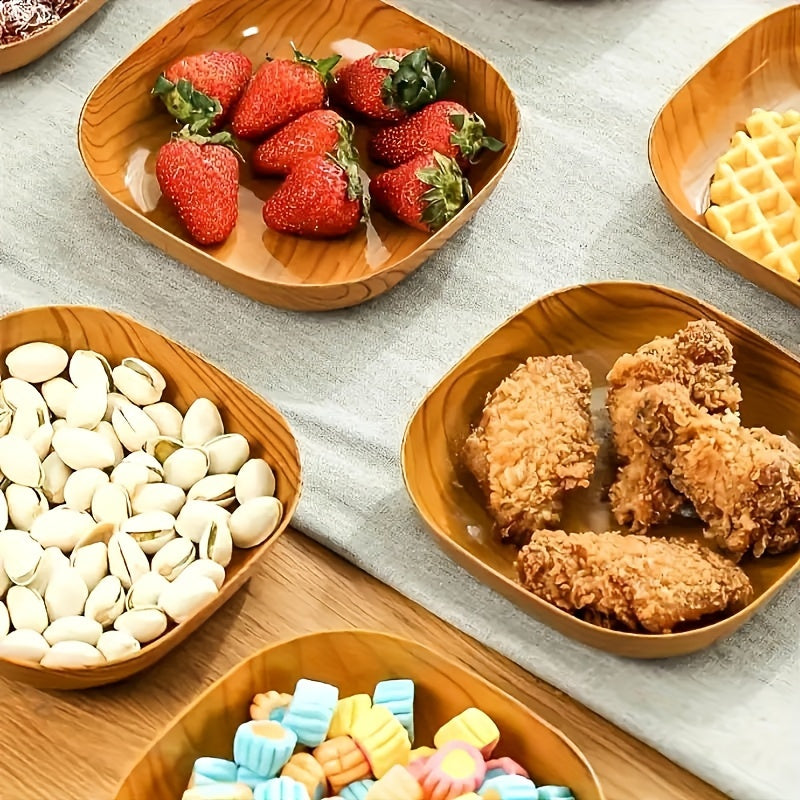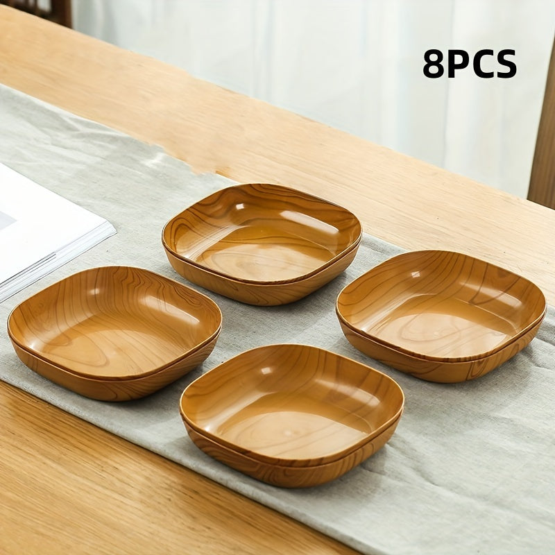 Yapon yog'och yoyi naqshli 8 ta plastik xizmat qilish plitalari to'plami, atıştırmalıklar va shirinliklar uchun
