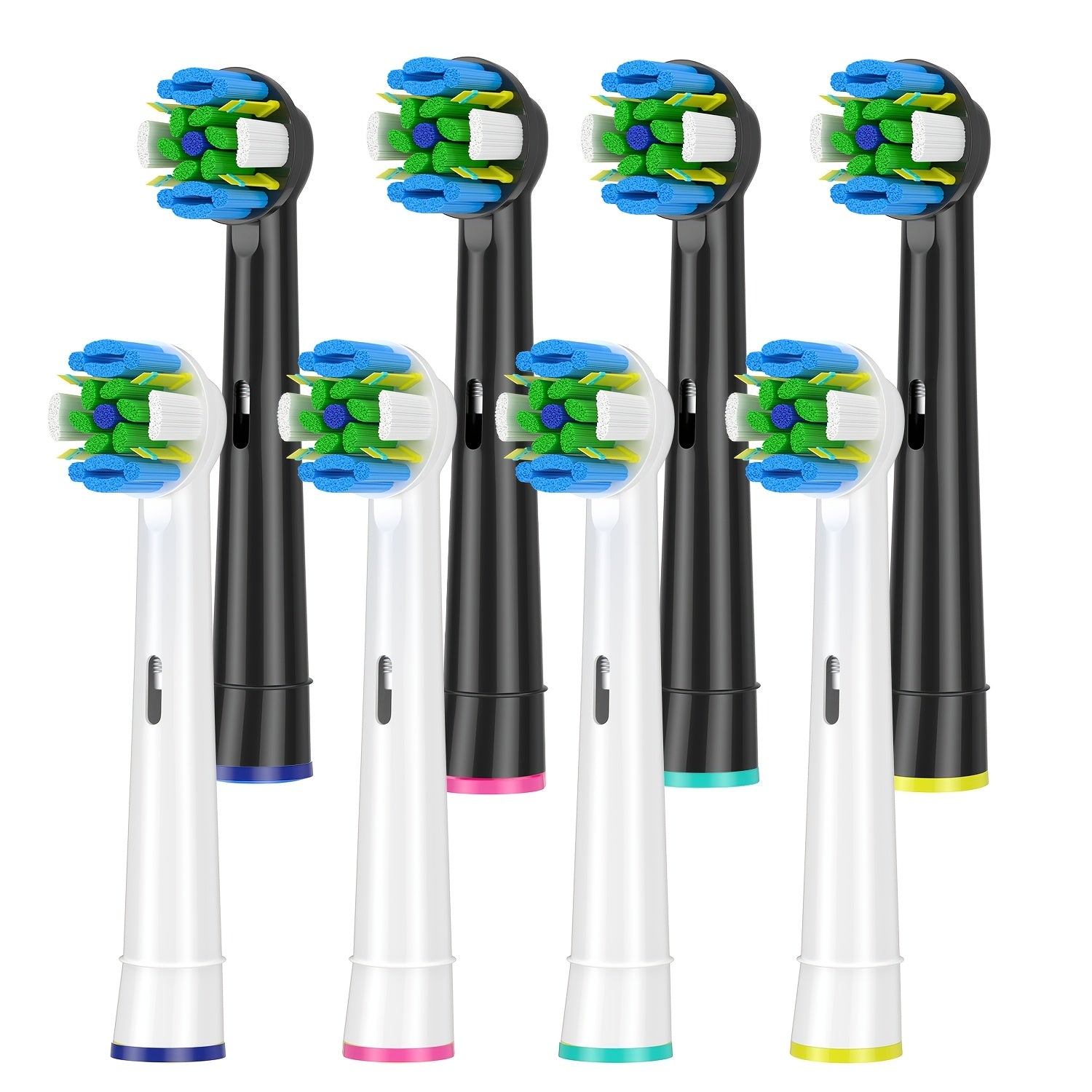 8 dona Elektr tozalash choʻtkalari uchun almashtirish boshliqlari, koʻk va yashil soʻqichlar, yumshoq, tish goʻshtini massaj qilish