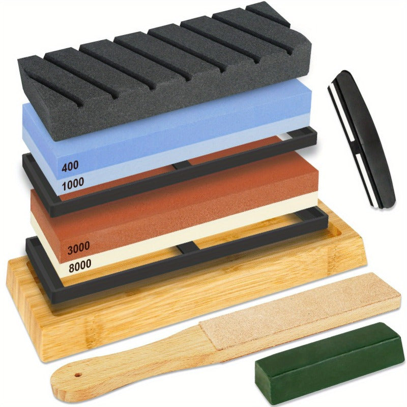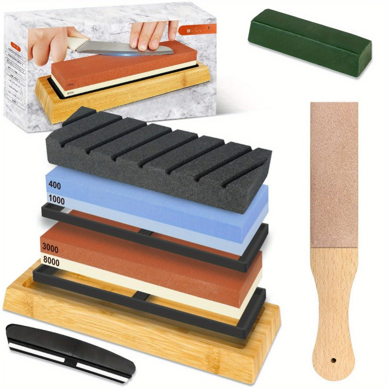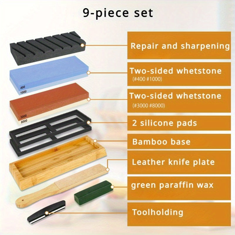 9-ta professional pichoq silliqlash to'plami, sirpanmaydigan asos, tekis toshlar, burchak qo'llanmasi, charm bilan silliqlash
